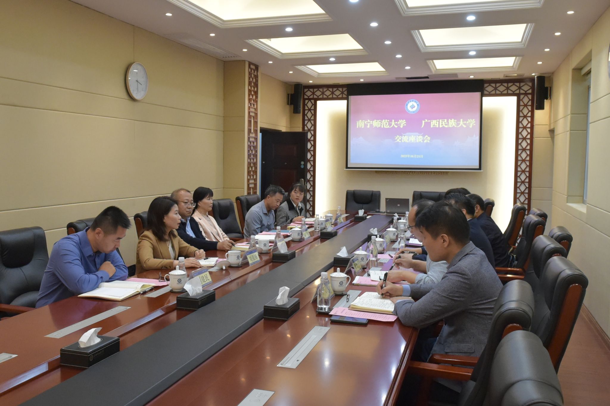 10月23日,数字广西集团有限公司代表团到校交流访问,高兴宇出席座谈会。双方就共建产学研平台、东盟语言AI实验室建设及复合型人才培养等合作事宜达成共识。(初审/张玉贞 图文/闭足 编/黎倩雅 苗予嘉 复审/韦利坤 终审/孙寿媚)