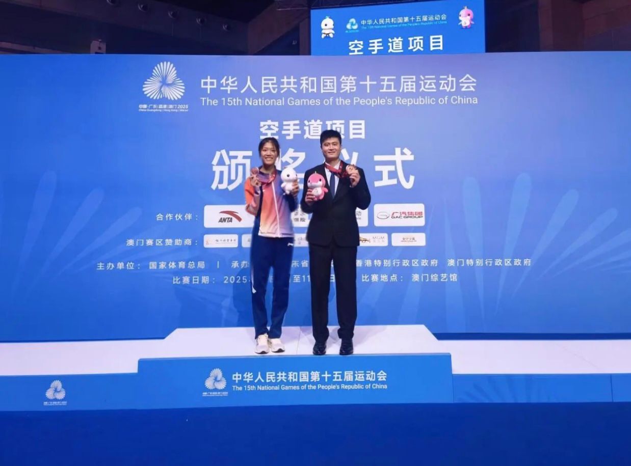 苏家洁获第十五届全运会空手道项目女子公开组61公斤以上级铜牌