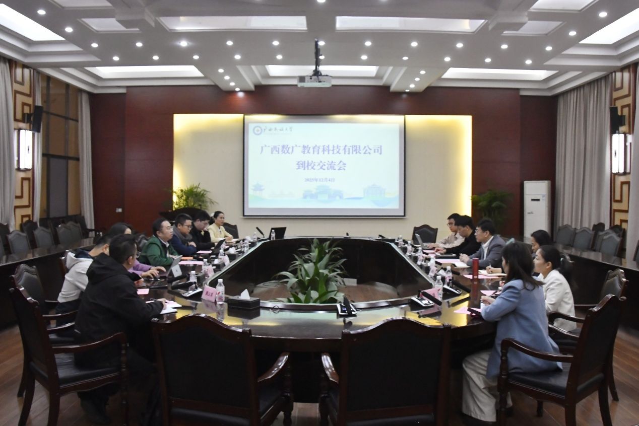 12月4日,高兴宇会见广西数广教育科技有限公司总经理刘雨一行。双方就东盟语料库建设路径、垂类模型应用场景拓展等核心议题展开深入交流探讨。(初审/梁桂娥 图/卢思然 文/卢思然 翟英彤 编/梁晶晶 实习编辑:梁火琼 杨诗琦 复审/韦利坤 终审/孙寿媚)