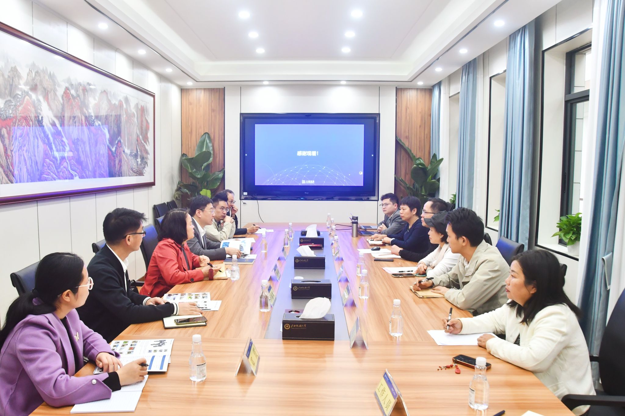 12月3日,校党委常委、副校长高兴宇与到访的大陆智源科技(北京)有限公司一行进行座谈,双方就产业发展与人工智能深度融合、校企实践平台搭建、推动前沿科技落地转化、助力广西特色产业数字化升级等议题展开交流。(初审/梁桂娥 图文/农可盈 编/梁晶晶 复审/韦利坤 终审/孙寿媚)