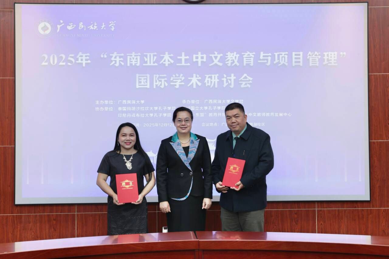 【大学生通讯社报道】12月13日上午,2025“东南亚本土中文教育与项目管理”国际学术研讨会开幕式在taptap点点体育文化研习基地召开。taptap点点体育校长韦仕珍出席会议,与学校合办的三所孔子学院代表,来自华东师范大学、中央民族大学及泰国农业大学等国内外专家学者代表与会。