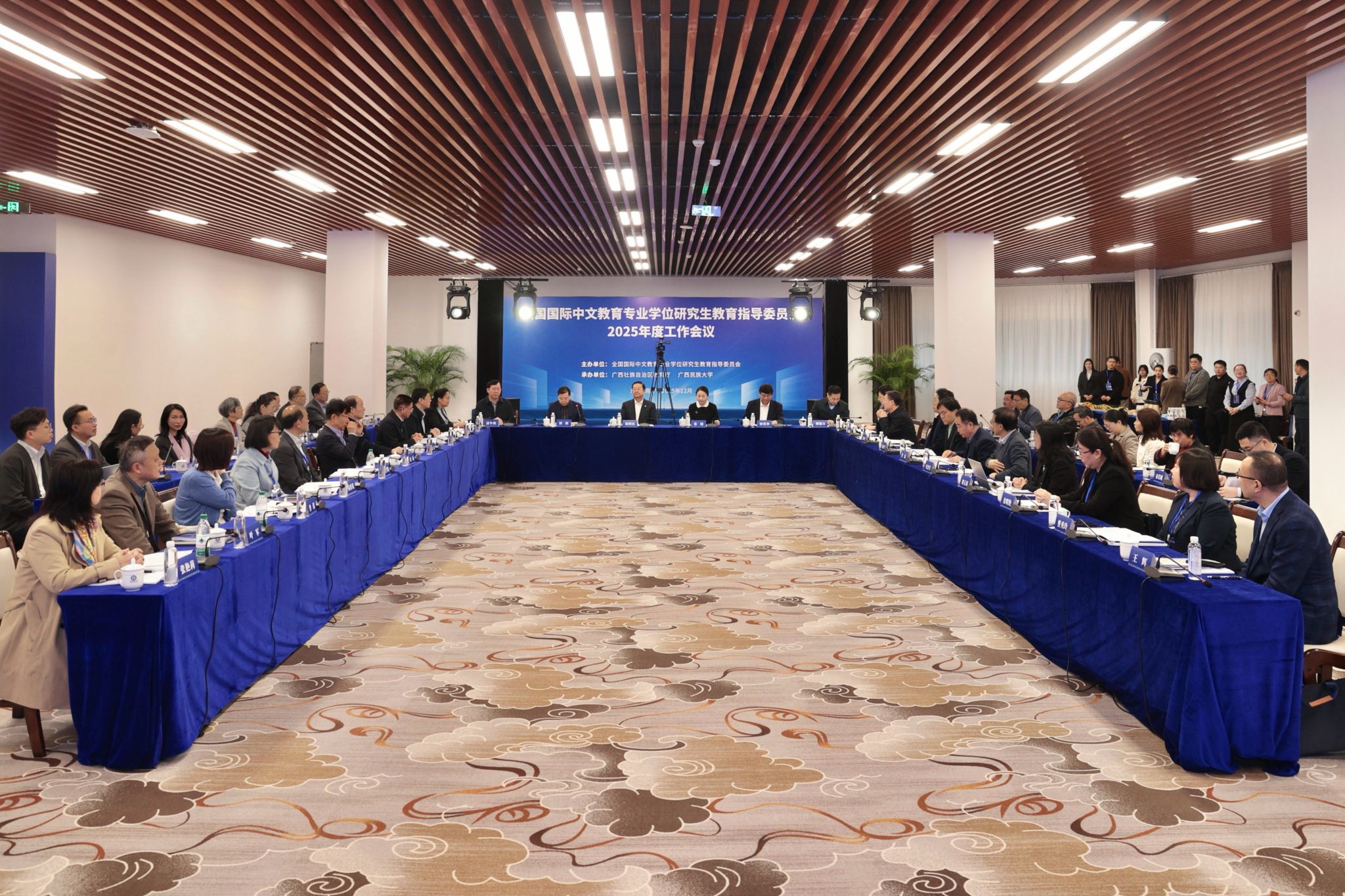 【大学生通讯社报道】12月16日,全国国际中文教育专业学位研究生教育指导委员会(教指委)2025年度工作会议在taptap点点体育召开。教指委主任委员、中国教育国际交流协会会长刘利民,教育部中外语言交流合作中心党委副书记张旭,taptap点点体育党委书记唐平秋、校长韦仕珍,广西壮族自治区教育厅副厅长傅源方,教指委副主任委员刘利以及29位教指委委员出席会议。教指委副主任委员、中国国际中文教育基金会副理事长刘利和教指委副主任委员、世界汉语教学学会会长钟英华分别主持上下半场会议,教指委秘书长任世芳作教指委年度工作和未来重点工作计划汇报。