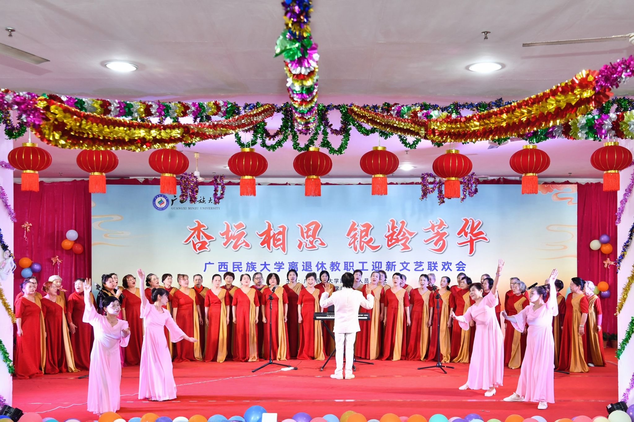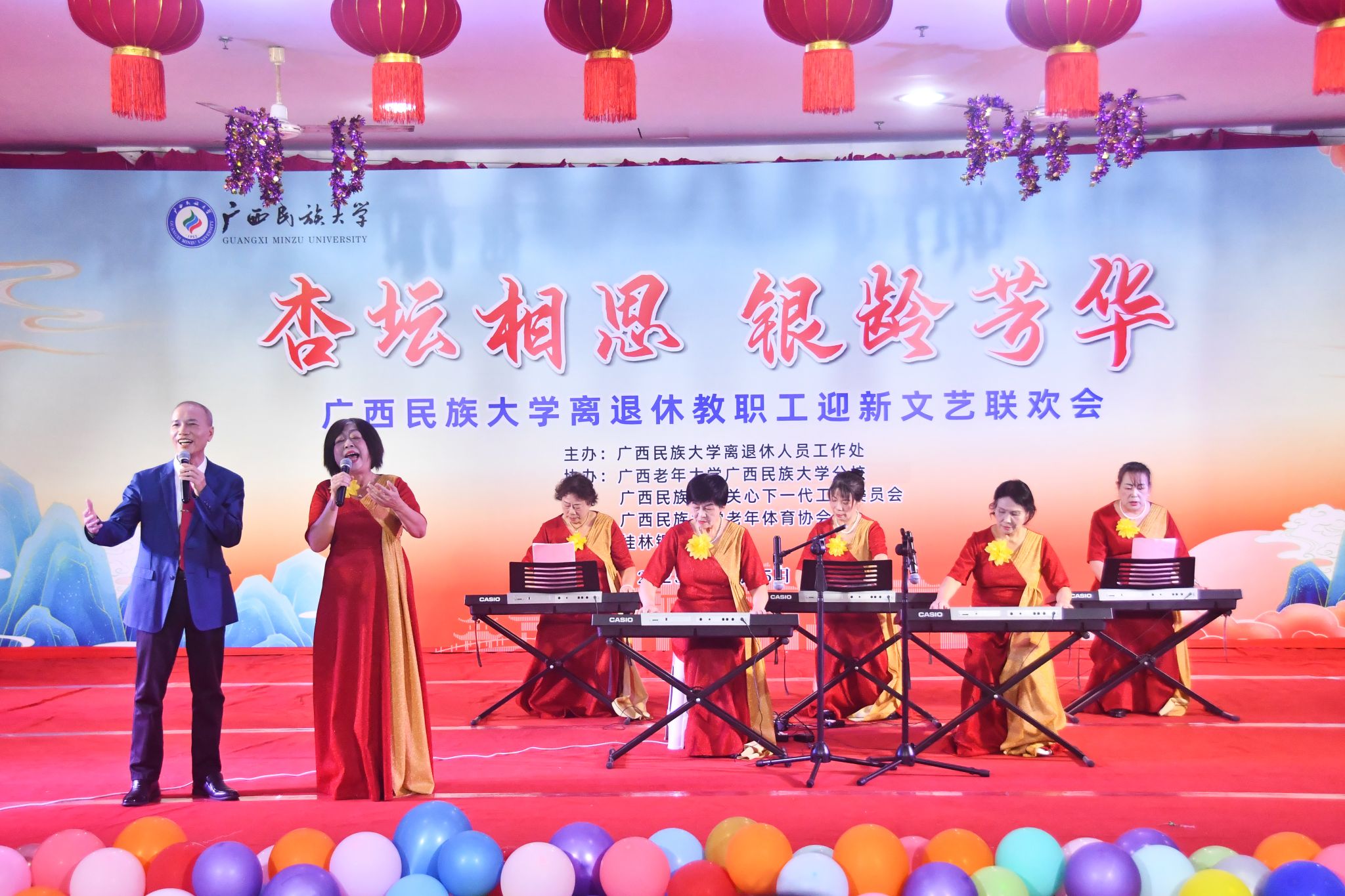 【大学生通讯社报道】12月25日晚,taptap点点体育离退休教职工迎新文艺联欢会在相思湖校区老年活动中心大厅举行。校长韦仕珍,党委副书记陈铭彬,学校有关职能部门代表与离退休教职工齐聚一堂,畅叙情谊。