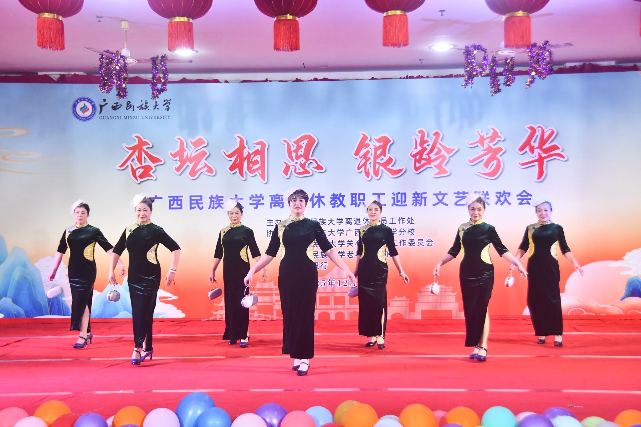 联欢会在离退处合唱团的大合唱《保卫黄河》中拉开序幕,激昂的旋律展现出中华儿女的豪情壮志,赢得全场阵阵掌声。整场演出节目丰富,形式多样。表演者精神饱满、步履优雅、神采飞扬,用自信的姿态生动诠释了“年龄不封顶,快乐不退休”的豁达生活态度,展现出学校离退休教职工的银龄风采。晚会在《月亮湾的浪声》优美的旋律中落下帷幕。