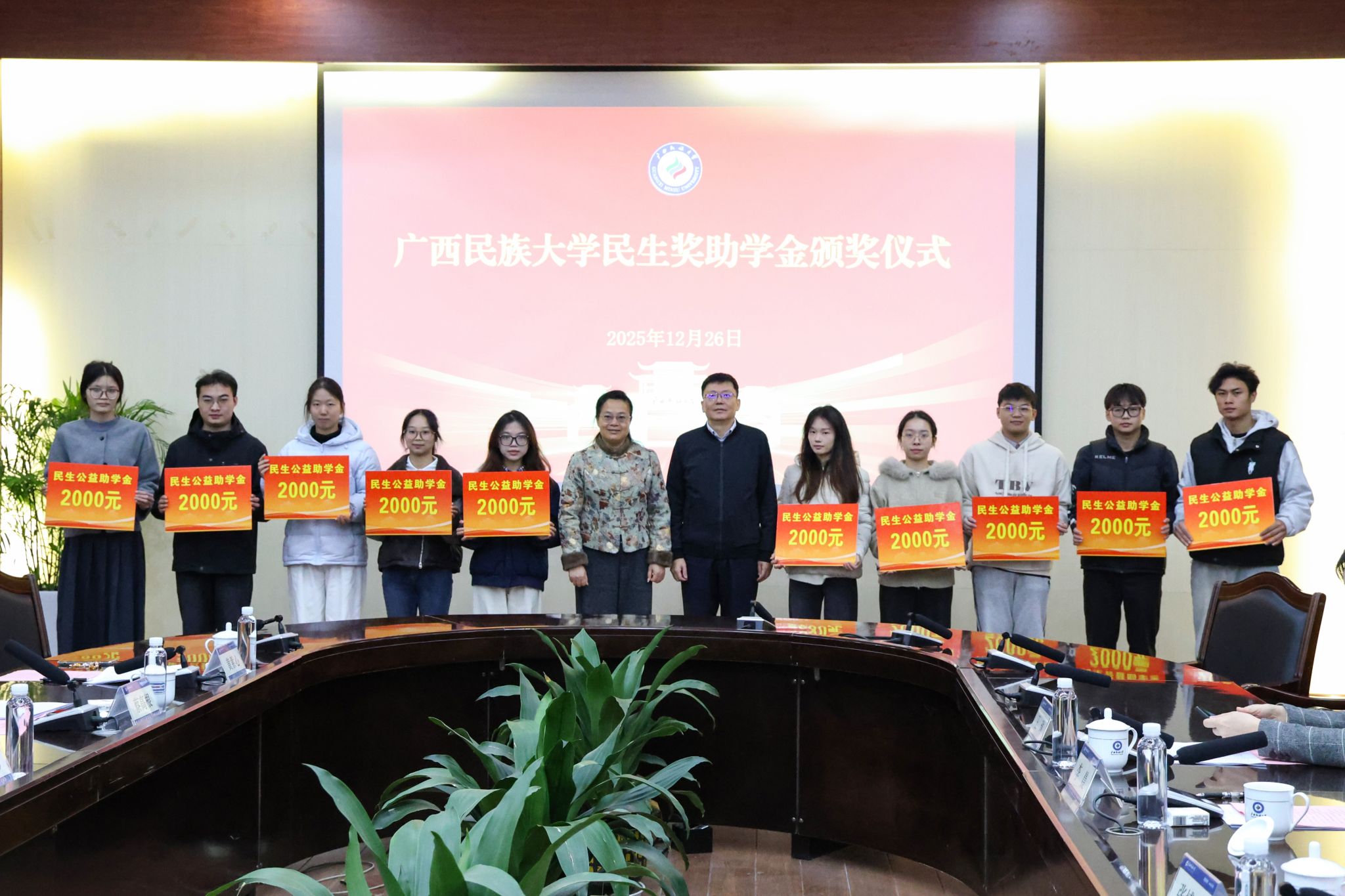 中国民生银行股份有限公司南宁分行代表,学校学生工作部(处)、财务处、国际合作与交流处、有关学院负责人及获奖学生代表参加仪式。(初审:罗少科 复审:韦利坤 终审:孙寿媚)