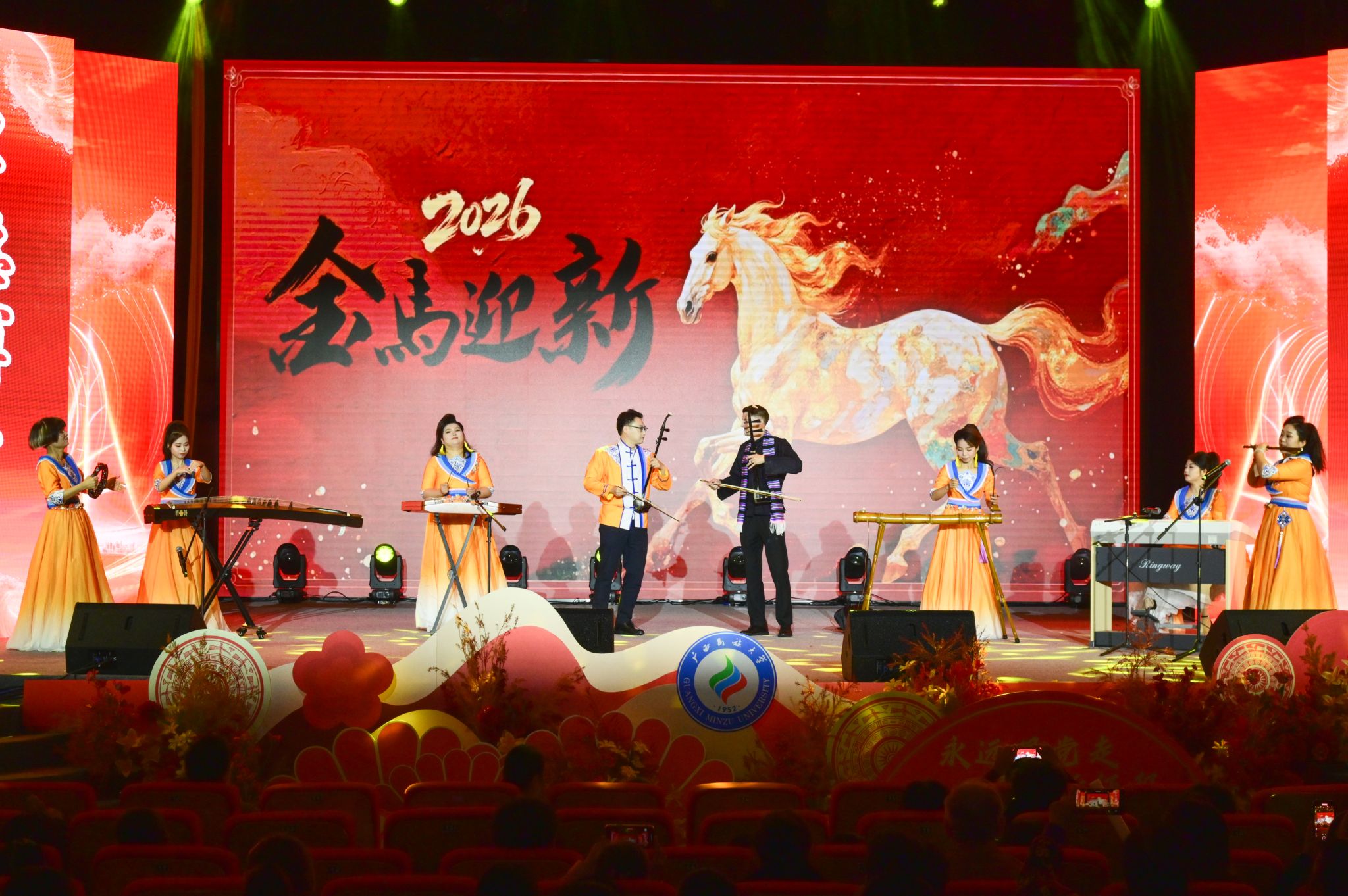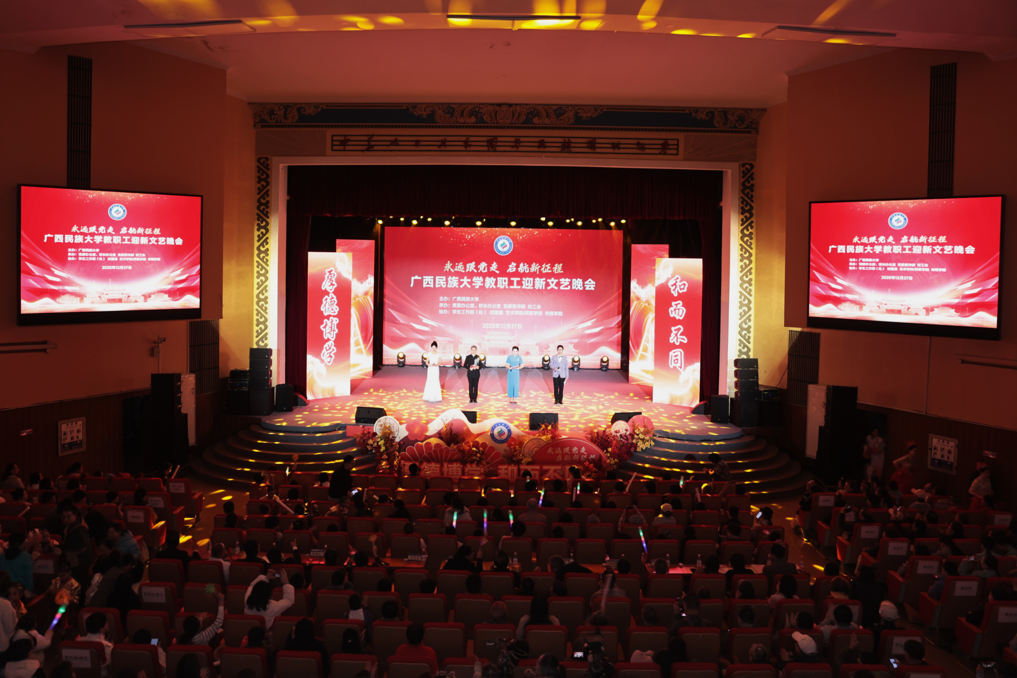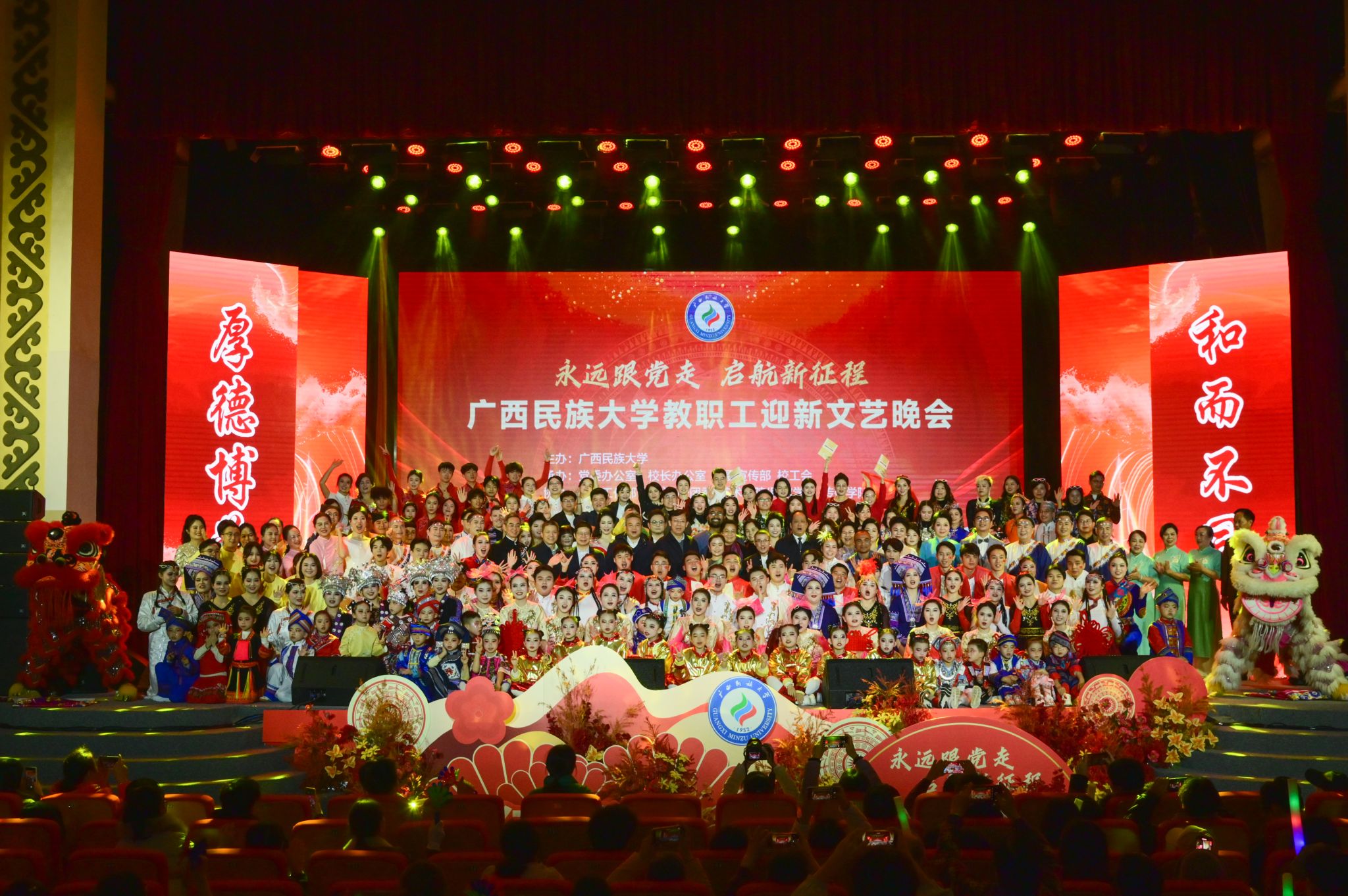 晚会以“永远跟党走,启航新征程”为主题,展现了学校教职工昂扬向上、团结奋进的精神面貌。学校始终牢记为党育人、为国育才办学使命,全面落实立德树人根本任务,积极响应国家高等教育高质量发展号召,在服务地方经济发展与国家战略建设中持续贡献“民大智慧”与“民大力量”。新的一年,全体教职工将继续坚守教育报国初心,勇担立德树人使命,以更加奋发有为的姿态、更加务实进取的作风,为学校高质量发展注入持续动力,共同谱写学校事业发展的崭新篇章。(初审:何波 复审:韦利坤 终审:孙寿媚)