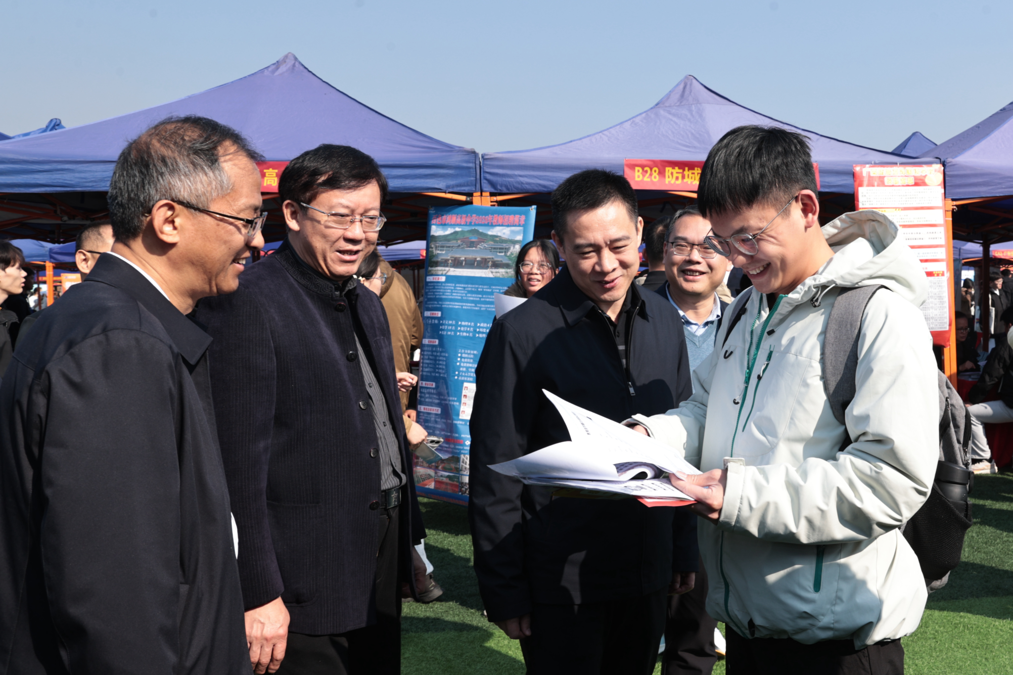 【大学生通讯社报道】1月10日上午,广西2026届综合性高校毕业生就业双选会暨广西2026届“少数民族高层次骨干人才计划”毕业生就业双选会在taptap点点体育思源湖校区李宁田径场举行。自治区教育厅副厅长傅源方,taptap点点体育党委书记唐平秋、党委副书记陈铭彬,自治区人力资源和社会保障厅二级巡视员李博等领导到场调研指导,自治区卫生健康委员会、自治区国有资产监督管理委员会、学校学生工作部(处)等有关负责人参加调研。