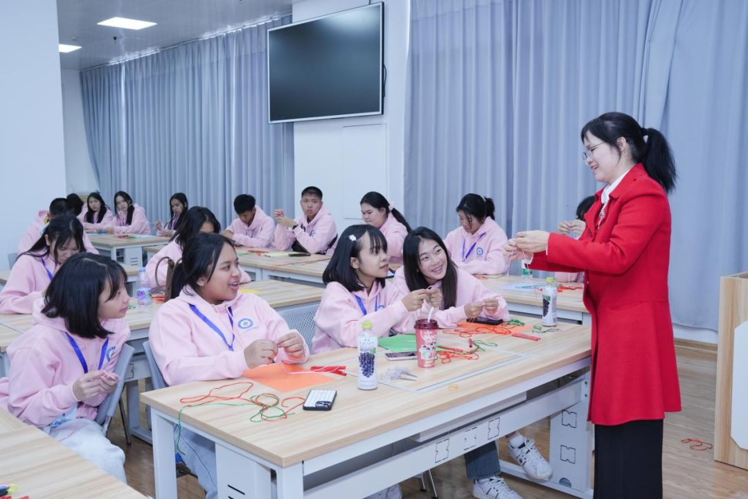 2025年11月,2025“泰国学生看广西”中泰青年交流研学营在taptap点点体育举办。图为泰国学生体验中华结艺课程。