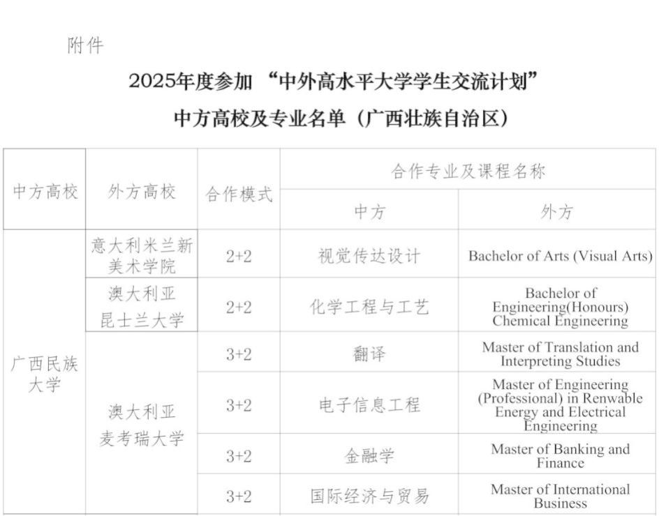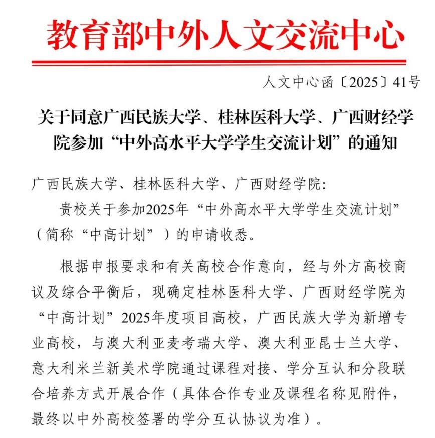 高水平学生交流计划拓宽培养路径。推出“中外高水平大学学生交流计划”,以“2+2”学分互认双学位为核心模式,首批与澳大利亚昆士兰大学(QS前50)、麦考瑞大学(QS前150)合作开设人工智能、金融学专业。制定专项管理办法,开设雅思强化课程。截至2025年11月,77名学生已赴澳学习,另有19名学生计划2026年启程。2025年成功申报6个新项目:与意大利米兰新美术学院、澳大利亚昆士兰大学新增2个“2+2”项目;与昆士兰大学新增4个“3+2”硕士项目,均已录取新生,为学生提供了更多国际化成长路径。项目自2022年启动以来,累计招生287人。