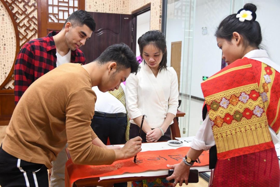 多元互动,人文交流平台增进理解促进融合。五年接待三所共建孔院的“汉语桥”访华团等172人,组织校内文化体验课及赴桂林、北海、北京等地体验文化风俗,增进文化了解。积极搭建人文交流平台,组织留学生参与校园国际文化节、美食节、泼水节等活动;支持留学生参加“当代世界·美美与共”论坛、东盟青年科学家论坛等学术活动;组织参加“中华经典诵读”等竞赛,获省部级以上奖近200项;组织参与“三月三”、中国-东盟博览会、北京冬奥云合唱等大型活动,深化文化认同。