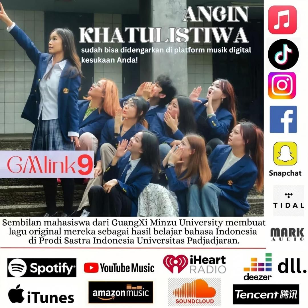 学校文学院2022级汉语国际教育(印尼)班“3+1”项目的9名同学在巴查查兰大学交换期间,与老师共同完成以“友谊”为主题的原创歌曲Angin Khatulistiwa(中文名《赤道的风》)。
