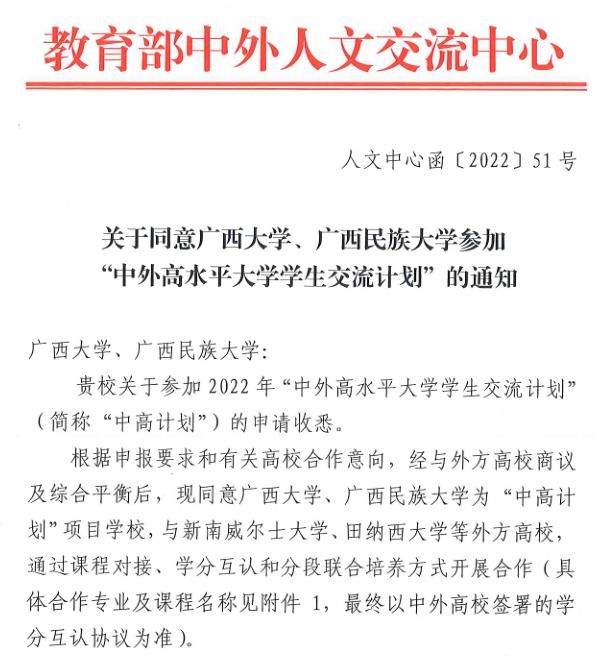 2022年学校获批参加“中外高水平大学学生交流计划”