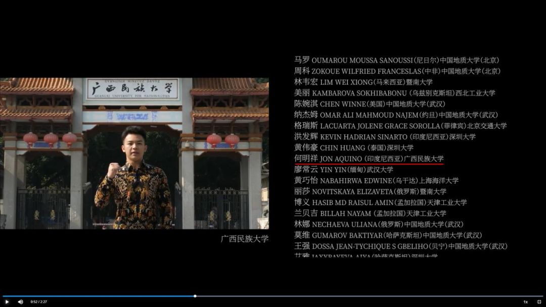 2022年,学校印度尼西亚留学生何明祥入选留学中国云合唱团,为北京冬奥会歌曲《冰雪之望》献唱。
