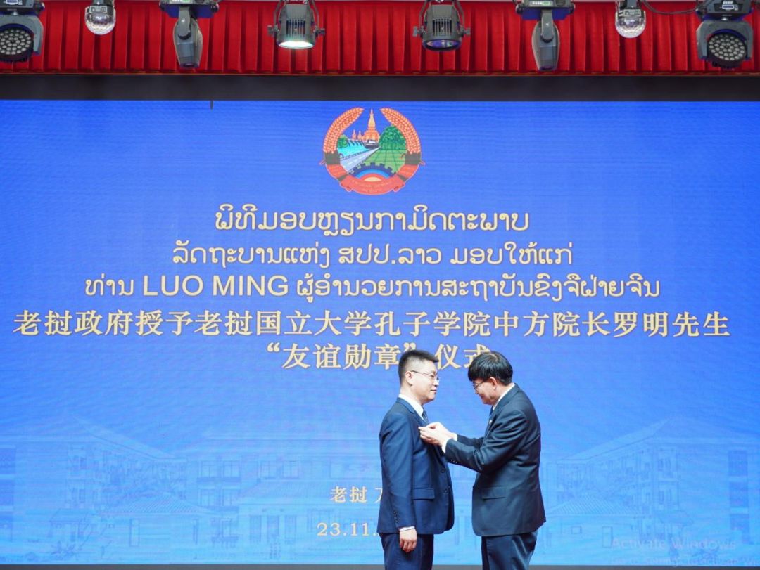2024年,时任老挝国立大学孔子学院中方院长罗明被授予老挝国家“友谊奖章”。