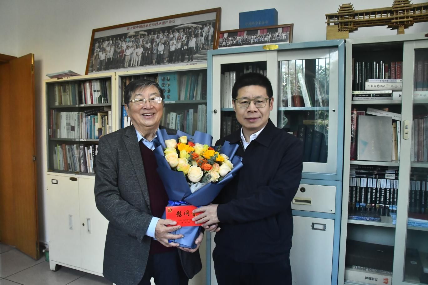 在走访慰问中,学校领导与教职工们亲切交谈,悉心询问他们的身体状况和生活情况,详细介绍了一年来学校在学科建设、科学研究、教育教学、师资队伍建设等方面取得的重要进展,并认真听取大家对学校发展的意见建议。学校领导对教职工们为学校建设发展付出的辛勤努力表示崇高敬意和诚挚感谢,希望他们继续以饱满的热情为学校的改革发展建言献策、同心同行,共同推动学校各项事业不断向前发展。