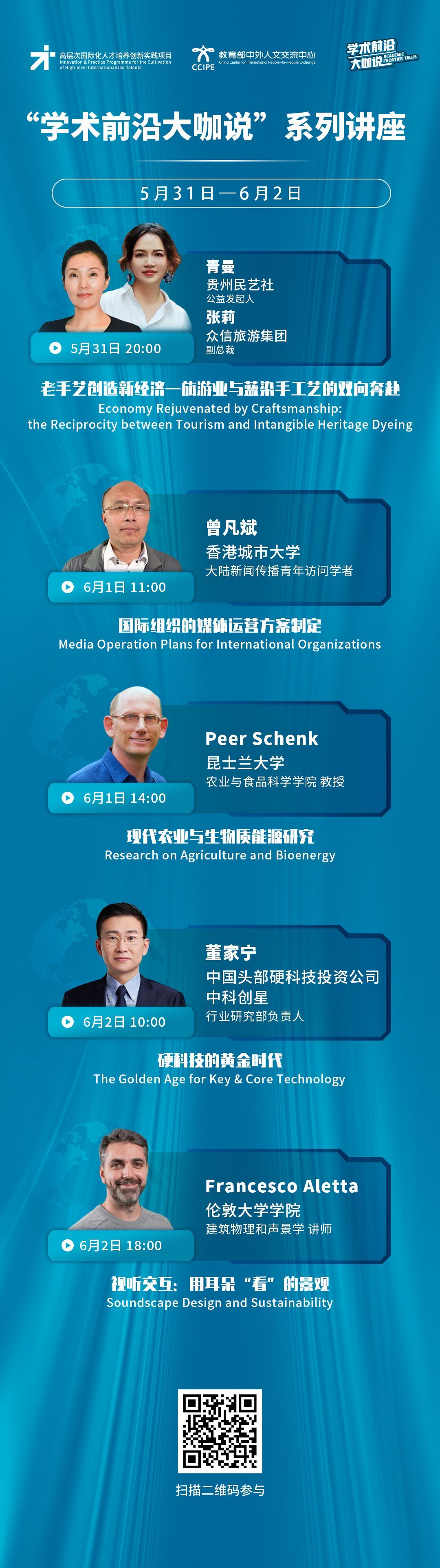讲座以线上直播形式举行,扫描附件二维码,注册信息即可参与。或者同时关注“高层次国际化人才培养加油站”官方微信公众号,在公众号对话页面最下方点击“精选讲座”-“学术前沿大咖说”,查看最新及往期讲座,点击直播或回放视频即可参加学习。