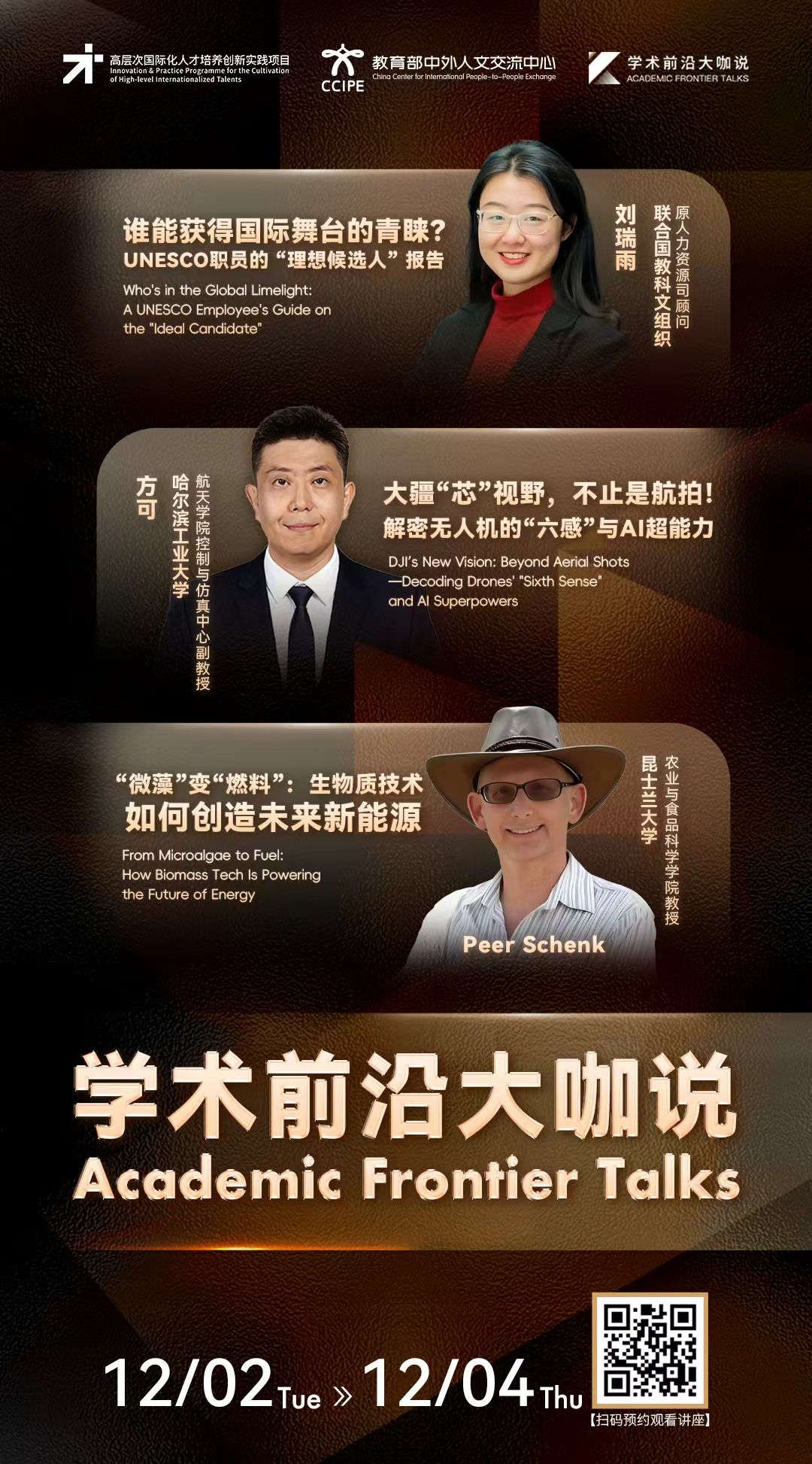 为贯彻落实《教育强国建设规划纲要(2024—2035年)》精神、强化现代化建设人才支撑,为进一步拓展同学们的国际化视野、接轨学科前沿,“学术前沿大咖说”第二周继续发力,高层次项目特邀联合国教科文组织原人力资源司顾问、低空科技领域专家、生物质能源领域学者,从国际职场路径、低空技术革新、新能源创新三大维度,带来可落地、高价值的实战分享,助力学子拓宽国际化视野、掌握前沿领域技能,在新兴产业浪潮中抢占先机。