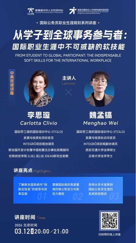 高层次国际化人才培养创新实践项目2026年春季学期国际公务员职业生涯规划系列讲座(第一期)