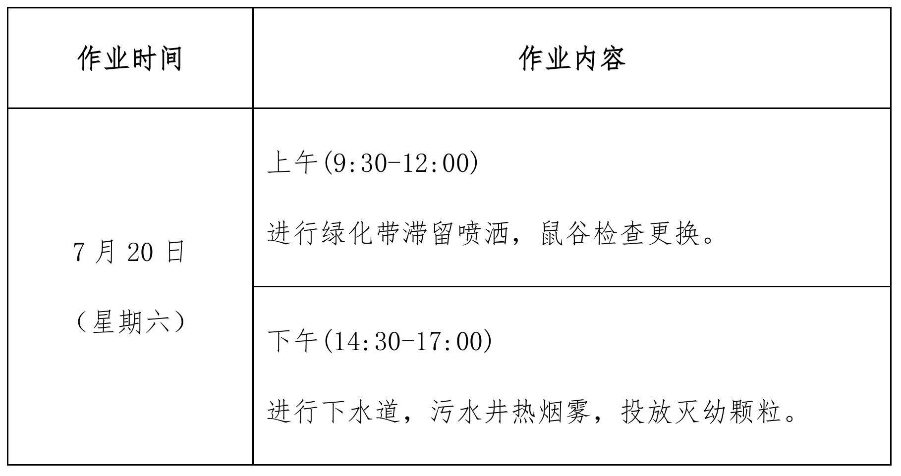 为做好校园公共区域绿化病虫害防治工作,有效保护校园生态环境,广西康安环境卫生管理有限公司将于2024年7月20日对相思湖校区道路两侧的树木、绿化带及下水道、污水井,老鼠屋开展病虫害防治消杀作业(详见附件)。