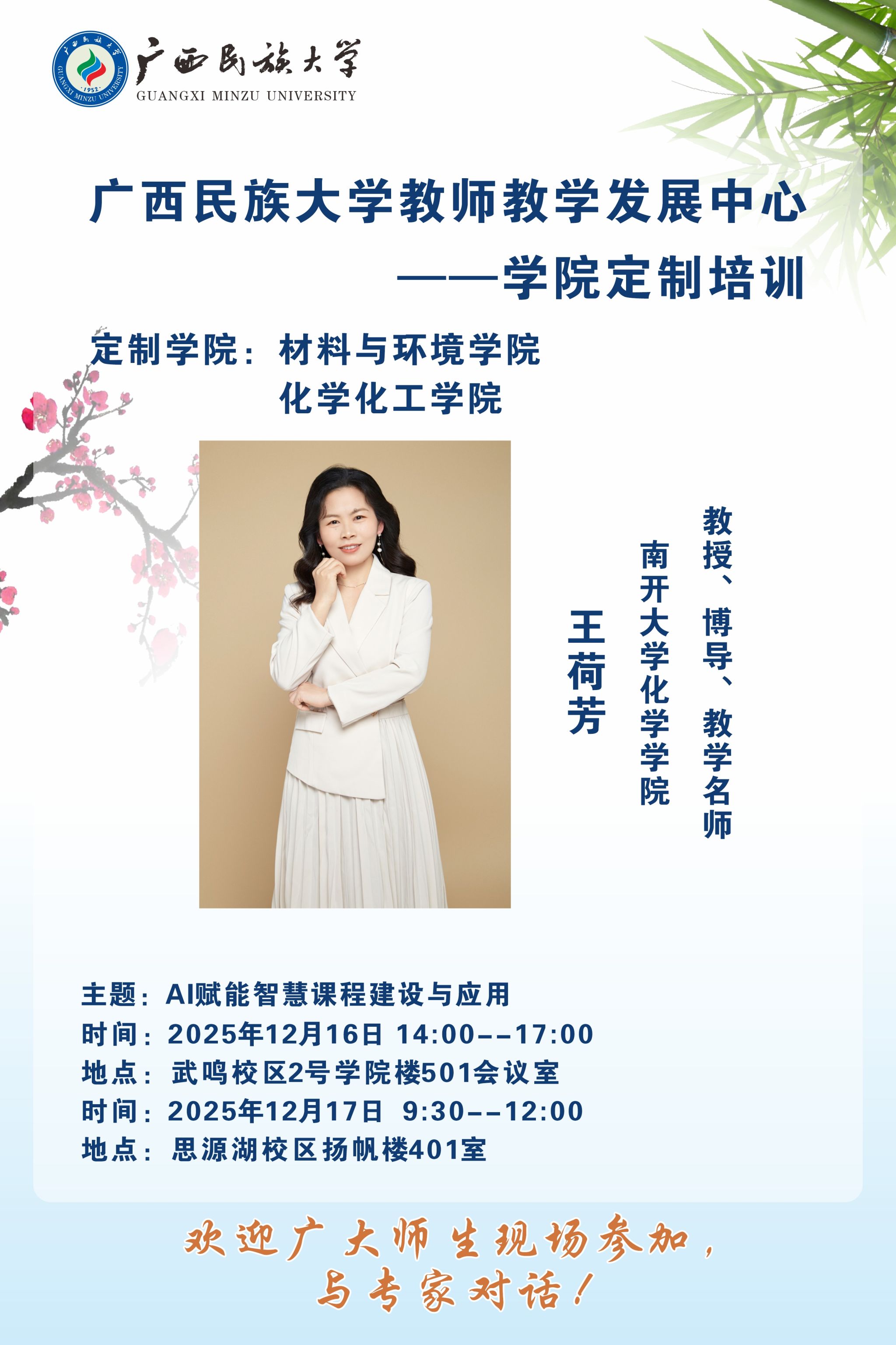 人工智能正深刻重塑高等教育形态,智慧课程建设已成为提升人才培养质量的关键路径。为主动应对这一变革,赋能教师发展,教务处/教师教学发展中心特别邀请南开大学王荷芳教授通过《仪器分析》课程案例,为我校相关专业课程的数字转型与智能升级提供前沿理念和实战方案。