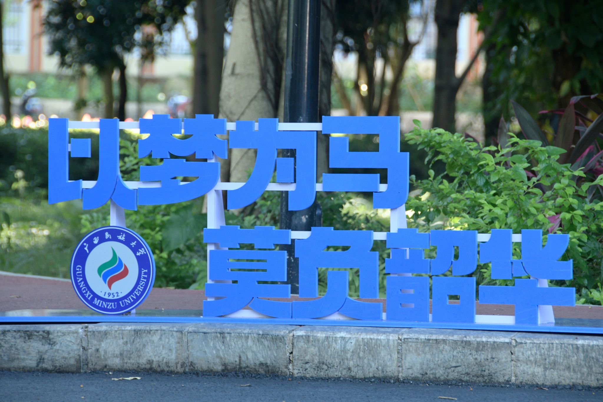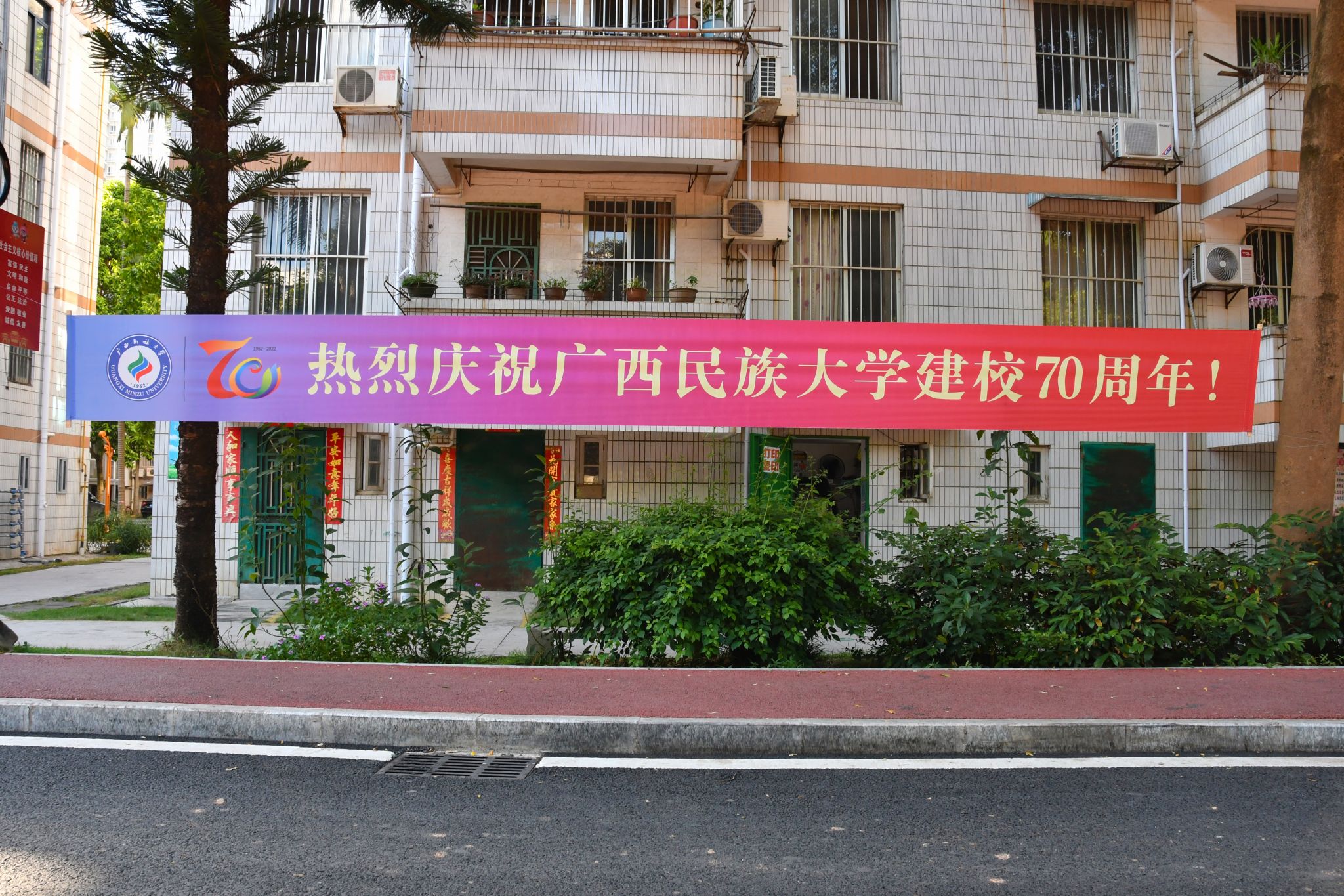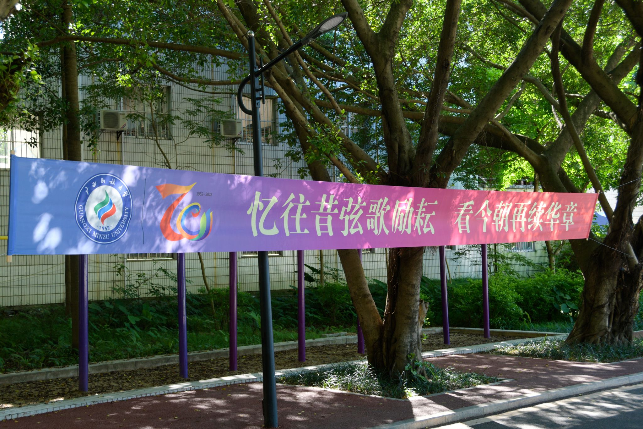 校庆标语 韦新春摄