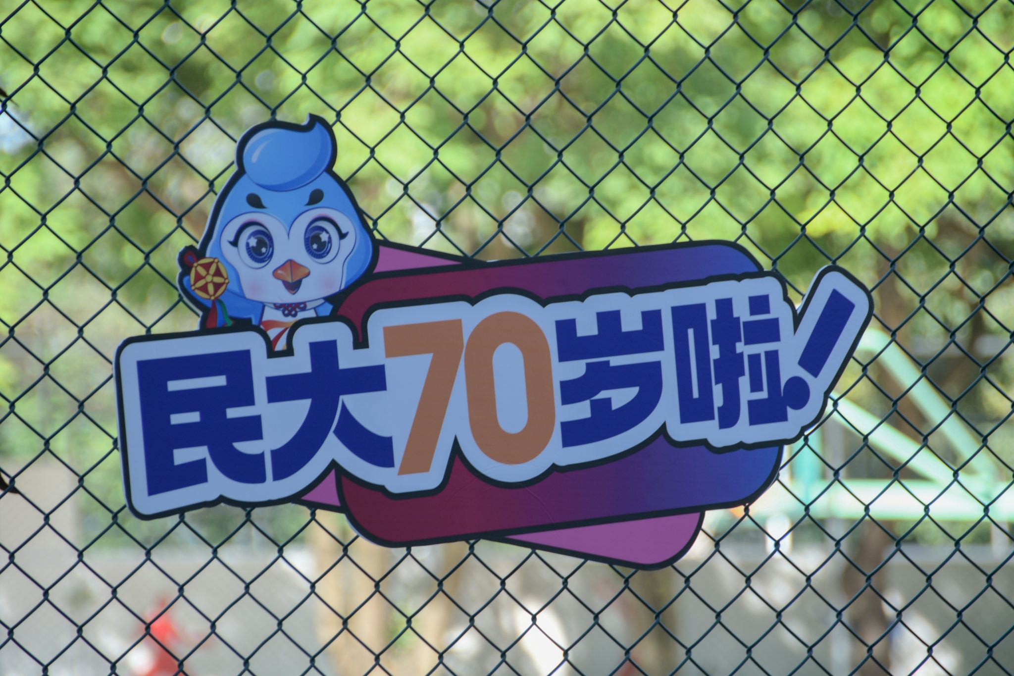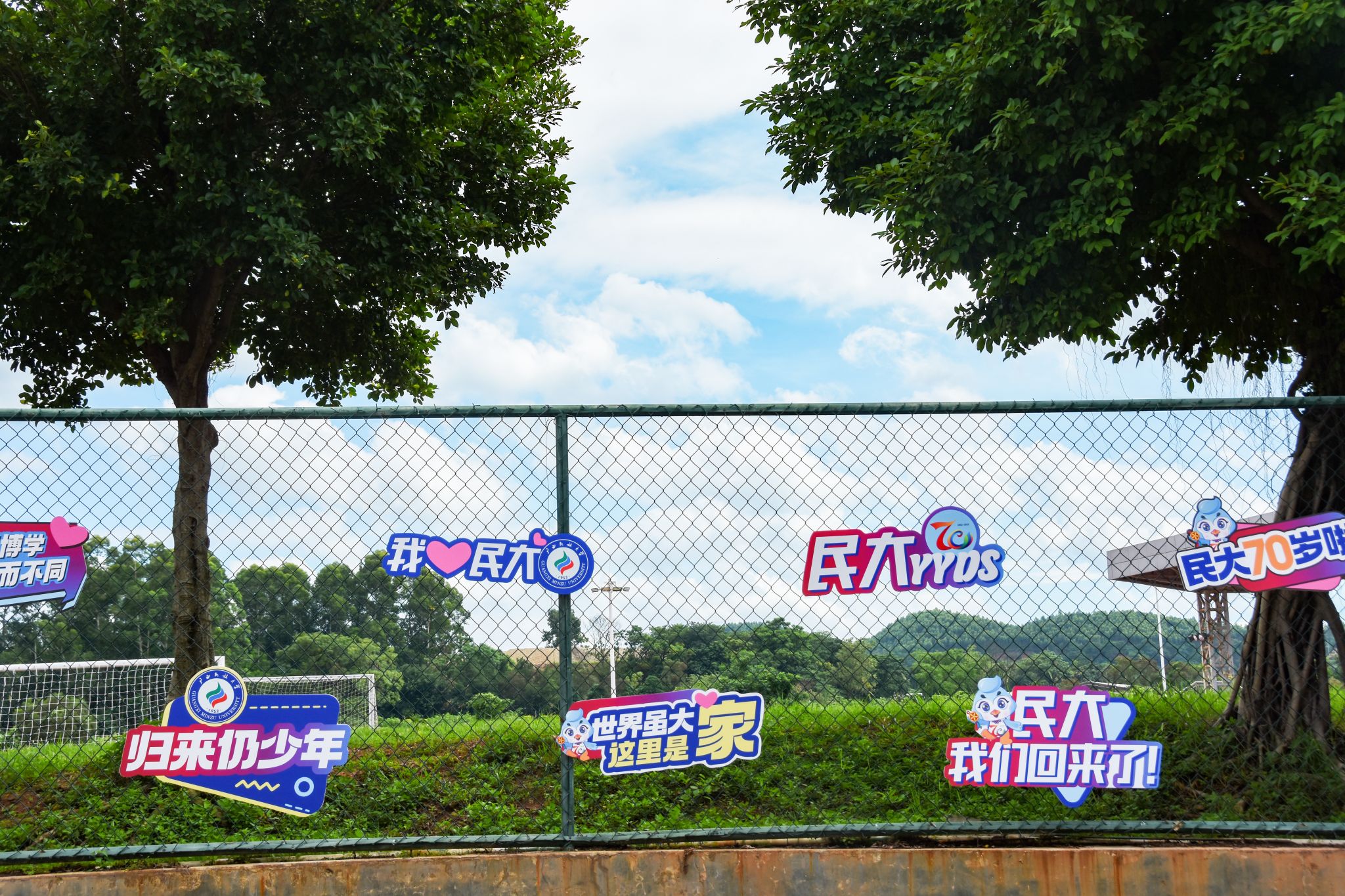 夏日清风微抚,蓝天白云照应下的标语,是独属于民大的生日浪漫。
