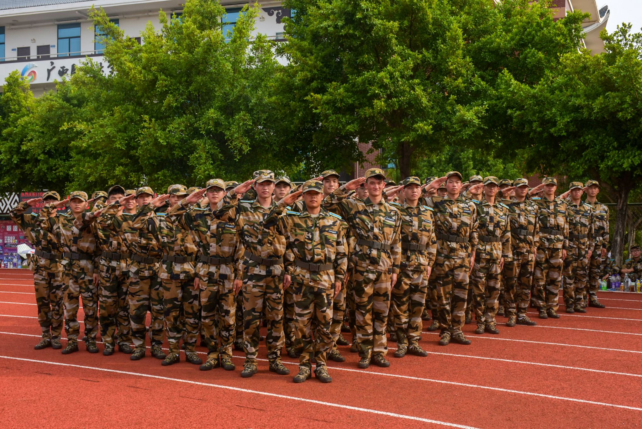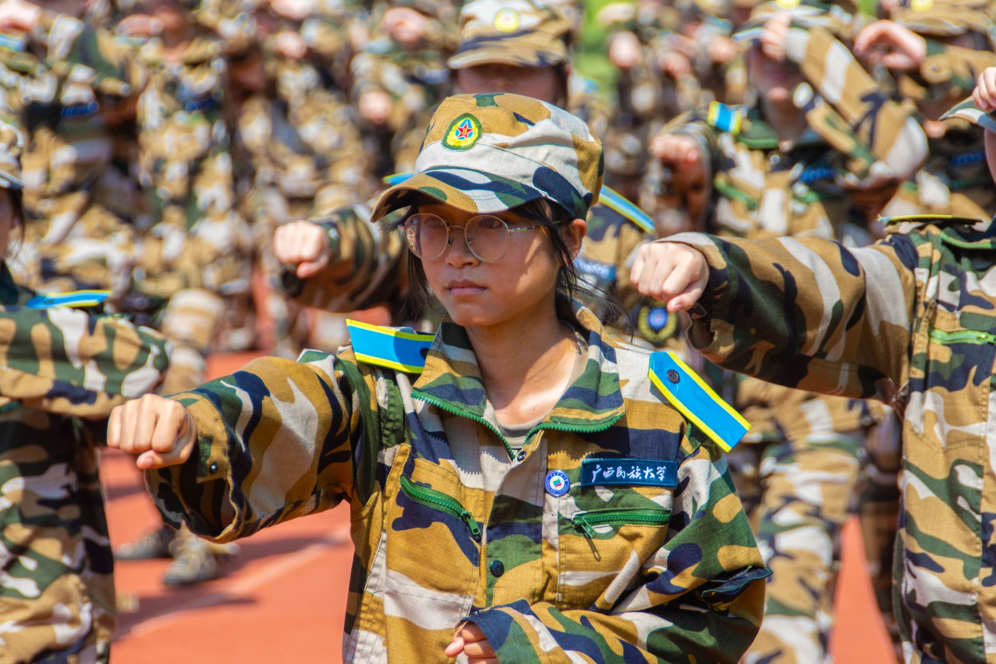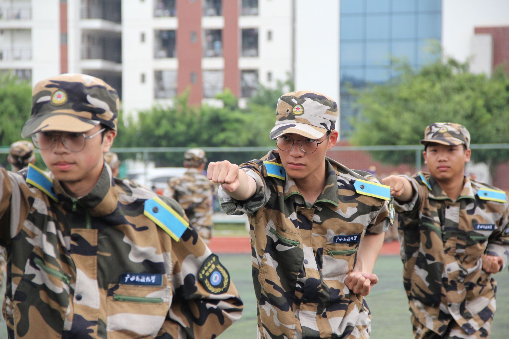 新生集体练习敬礼动作 覃文秋摄