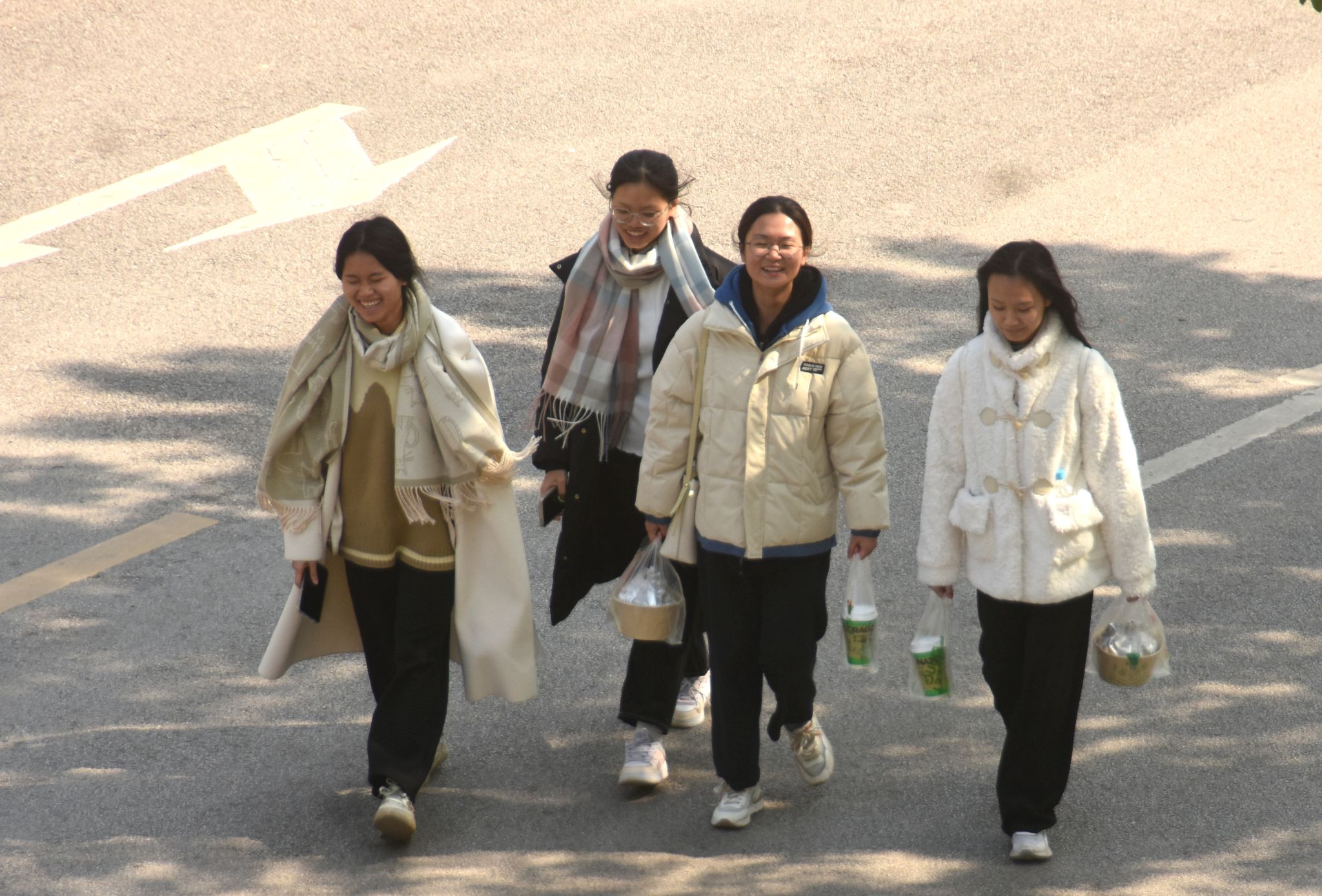 冬日校园的行人