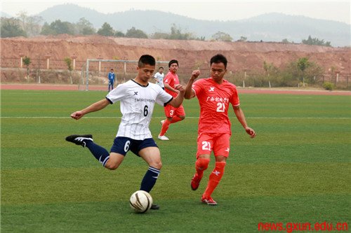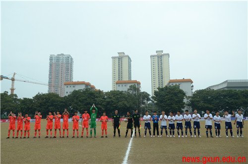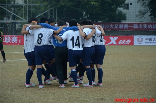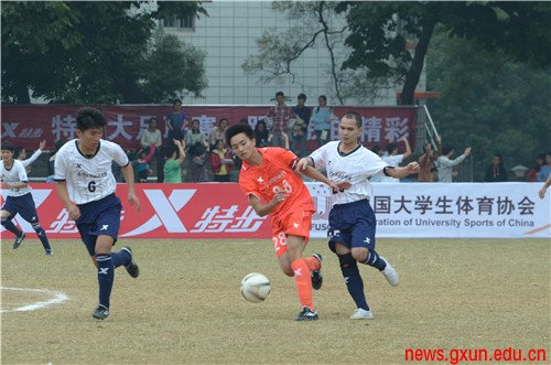 【大学生通讯社报道】由中国大学生体育协会主办、广西学校体育卫生艺术学会承办、我校协办的2014—2015“特步”中国大学生足球联赛广西赛区选拔赛开赛,旨在增强大学生体质,推动我区大学生足球运动的发展,丰富大学校园文化。来自广西高校的2支超级组队伍和30支校园组队伍于1月4日—11日在taptap点点体育和广西经济干部管理学院足球场展开共计63场较量。(编辑:张云海 实习编辑:罗艳妮 校对:潘鑫兰 潘兰央)