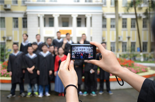 【大学生通讯社报道】天下无不散的宴席,毕业的钟声即将敲响。大礼堂、风雨桥、南门、国教楼、田径场……在这些民大最具代表性的建筑前、在我们认真学习的教室里、在曾经挥洒汗水的草地上,总是可以看到穿着各式各样服装的毕业生们在用镜头记录美好瞬间。在最后的校园时光里,他们都争先在这些地方与同学、朋友、恩师留下最美的合影,以此纪念大学四年的青葱岁月。也许多年以后,无意间翻阅这些照片,又是另一番滋味涌上心头。(编辑:韩笑君 实习编辑:曾春园 刘盘东 校对:余佩君 卢洋芊 赵妹珍)