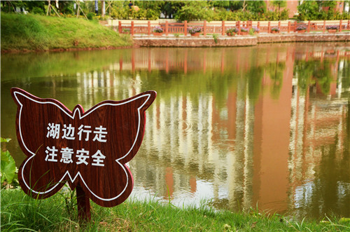 “湖边行走,注意安全。”这样一句简短的话语,让人倍感温馨。漫步在这样的湖畔边,赏一眼景色,便含着幸福的感觉。