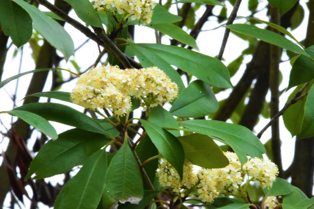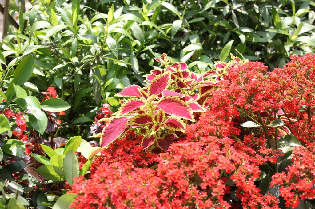 在清新恬淡的花丛中,艳丽的山茶花显得格外耀眼,让人不禁想起那句“似有浓妆出绛纱,行光一道映朝霞”。