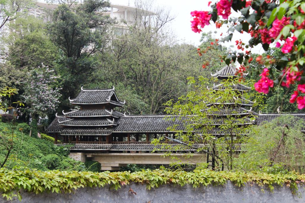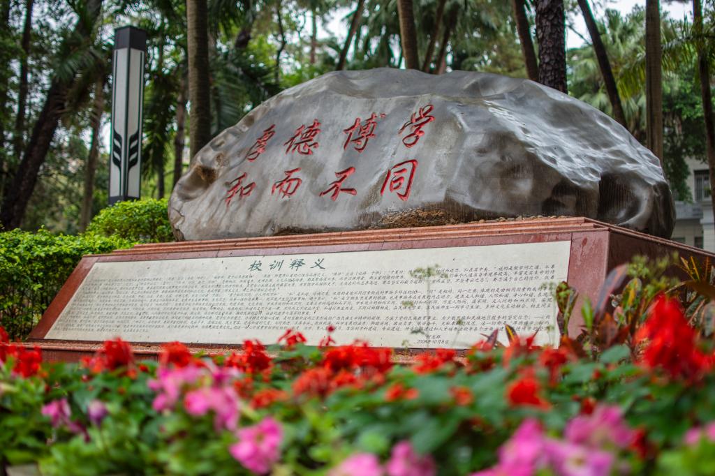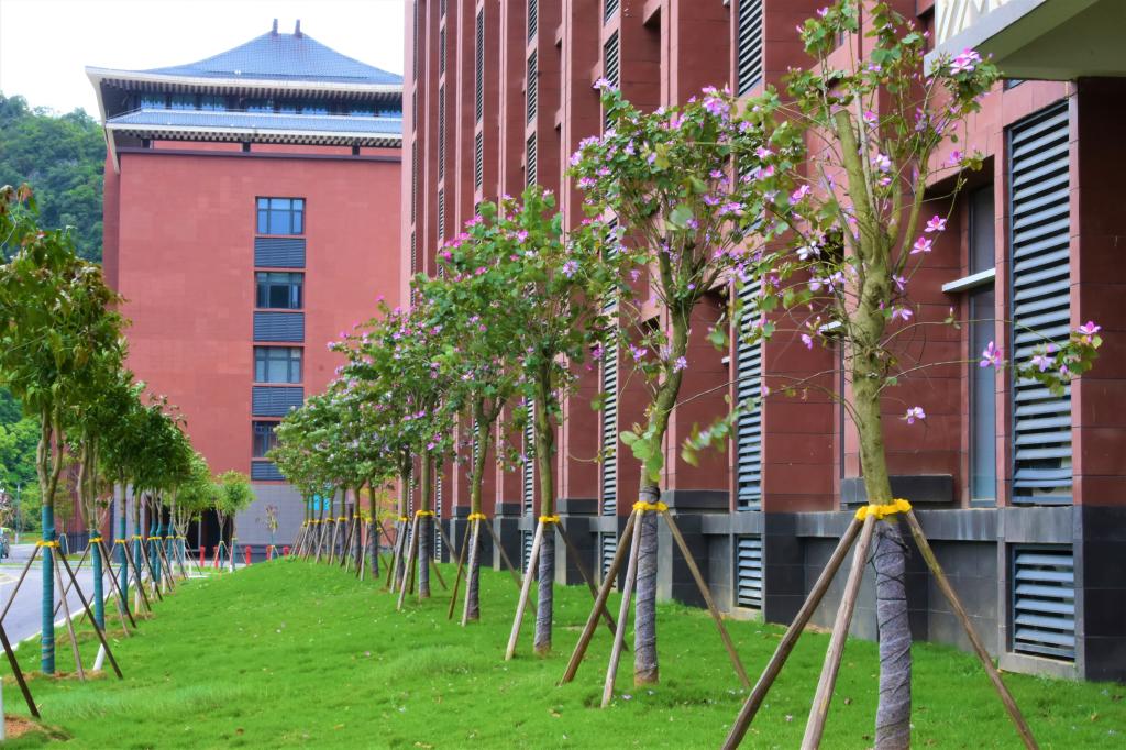 繁花掩映下的校园充盈着书香、花香,来来往往的学子更为校园添一分蓬勃朝气。