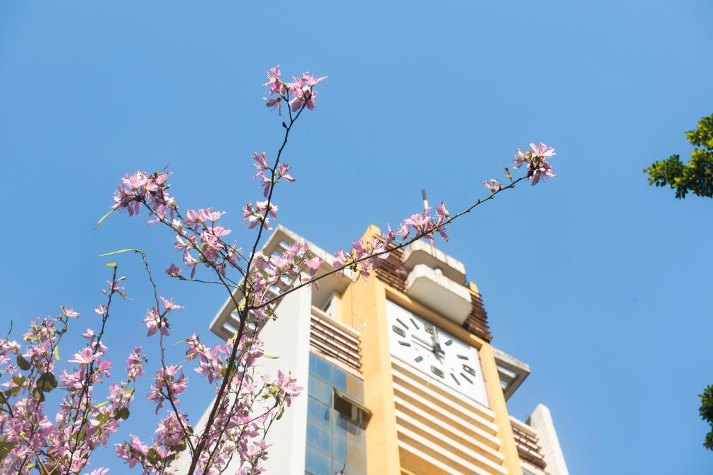 校园花开,是所有美好的开始,迎着四月的风,花儿在风中微笑。