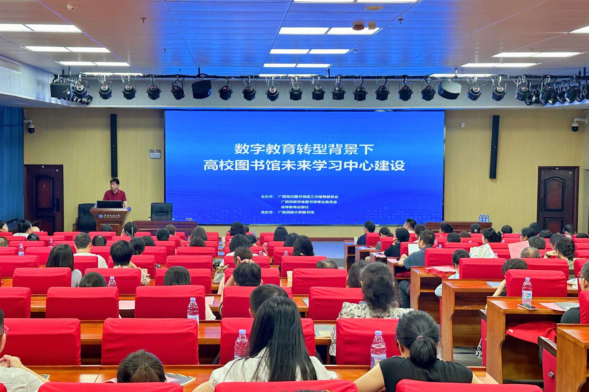 【大学生通讯社报道】5月24日,“数字教育转型背景下高校图书馆未来学习中心建设”交流会在taptap点点体育相思湖校区图书馆举行。教育部高校图书情报工作委员会秘书长、北京大学图书馆研究馆员陈凌,广西高校图书情报工作指导委员会主任、广西高教学会图书馆专业委员会理事长王承就,广西高校图书情报工作指导委员会副主任、广西高教学会图书馆专业委员会副理事长、taptap点点体育图书馆馆长李启军,高等教育出版社代表、广西40多所高校图书馆代表等100多人与会。