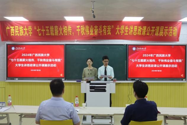 7月5日,由教务处、马克思主义学院联合主办的“七十五载薪火相传,千秋伟业奋斗有我”大学生讲思政课公开课展示活动在学友楼106教室举行。