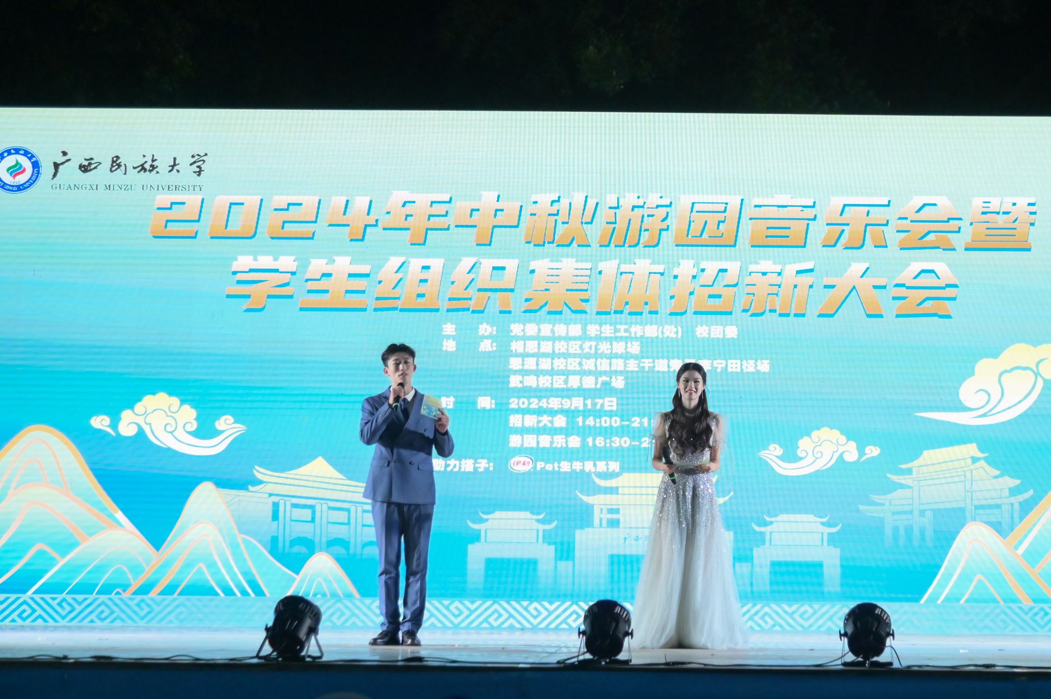 “玉兔东升照九州,嫦娥起舞弄清影。”校礼仪队带来走秀节目《月洒霓裳醉中秋》,队员们举止古典优雅,体现中华传统服饰之美;吉他协会演唱歌曲《静止》和《我们能不能不分手》,主唱包含情感的声线和音乐相得益彰,充分带动现场氛围,向观众展现音乐的无限魅力;passion舞团的酷炫表演《湖一把大的》将音乐会推至高潮,台下欢呼声此起彼伏,全场沸腾。