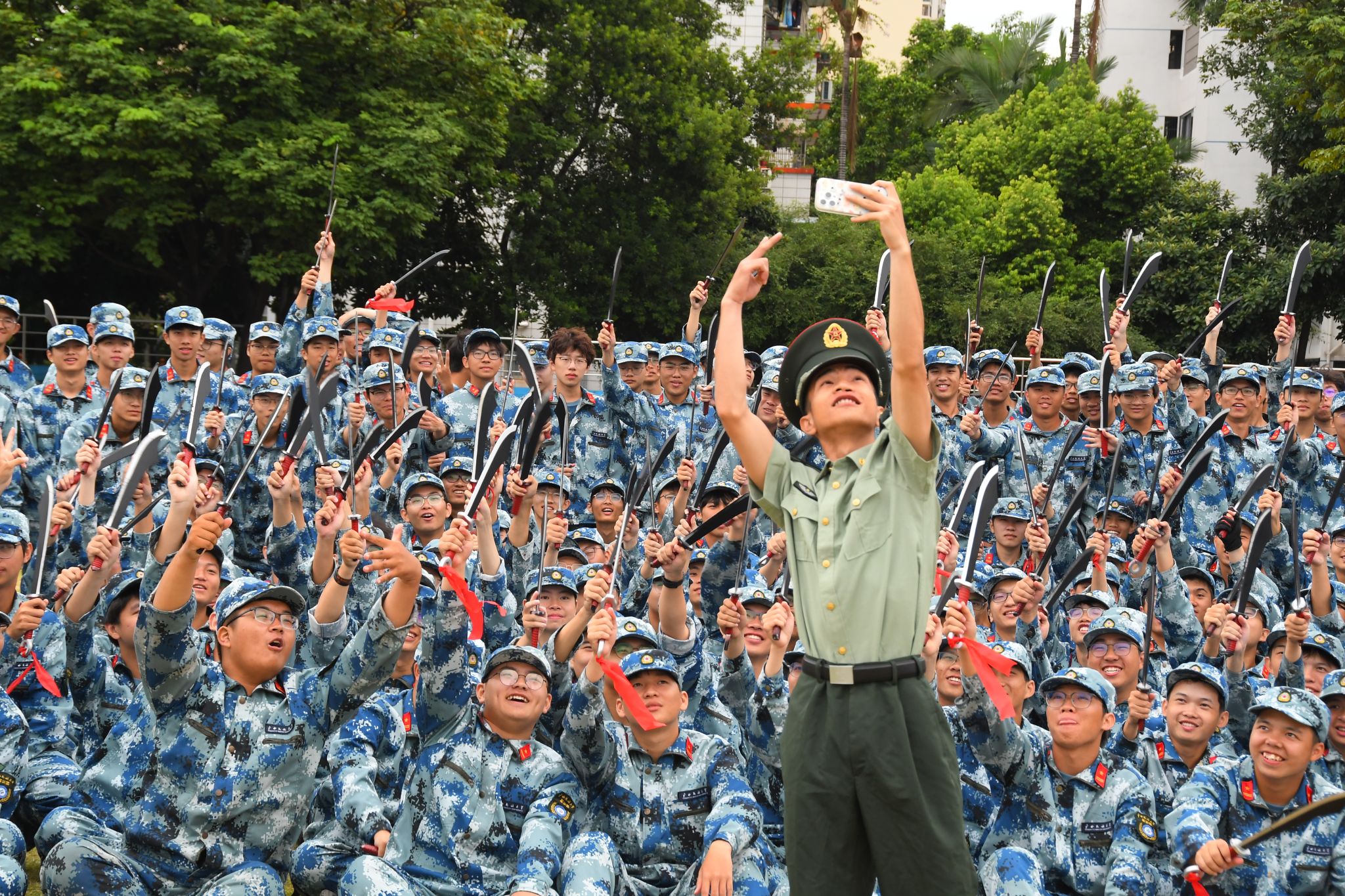此刻,他们纷纷聚在一起,用镜头将难忘的瞬间定格成永恒。每一张合影,都是青春印记中不可或缺的一章。教官的笑容里饱含欣慰,学生的眼中蕴藏感激,这份特殊的情谊,在快门声中得以永存。