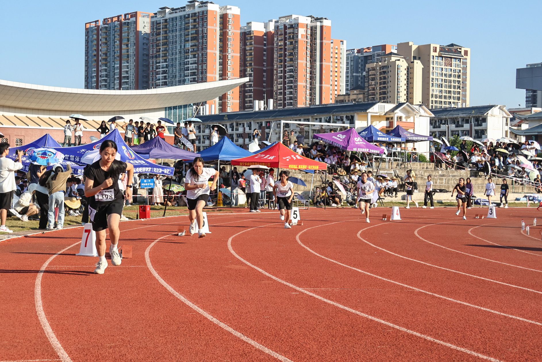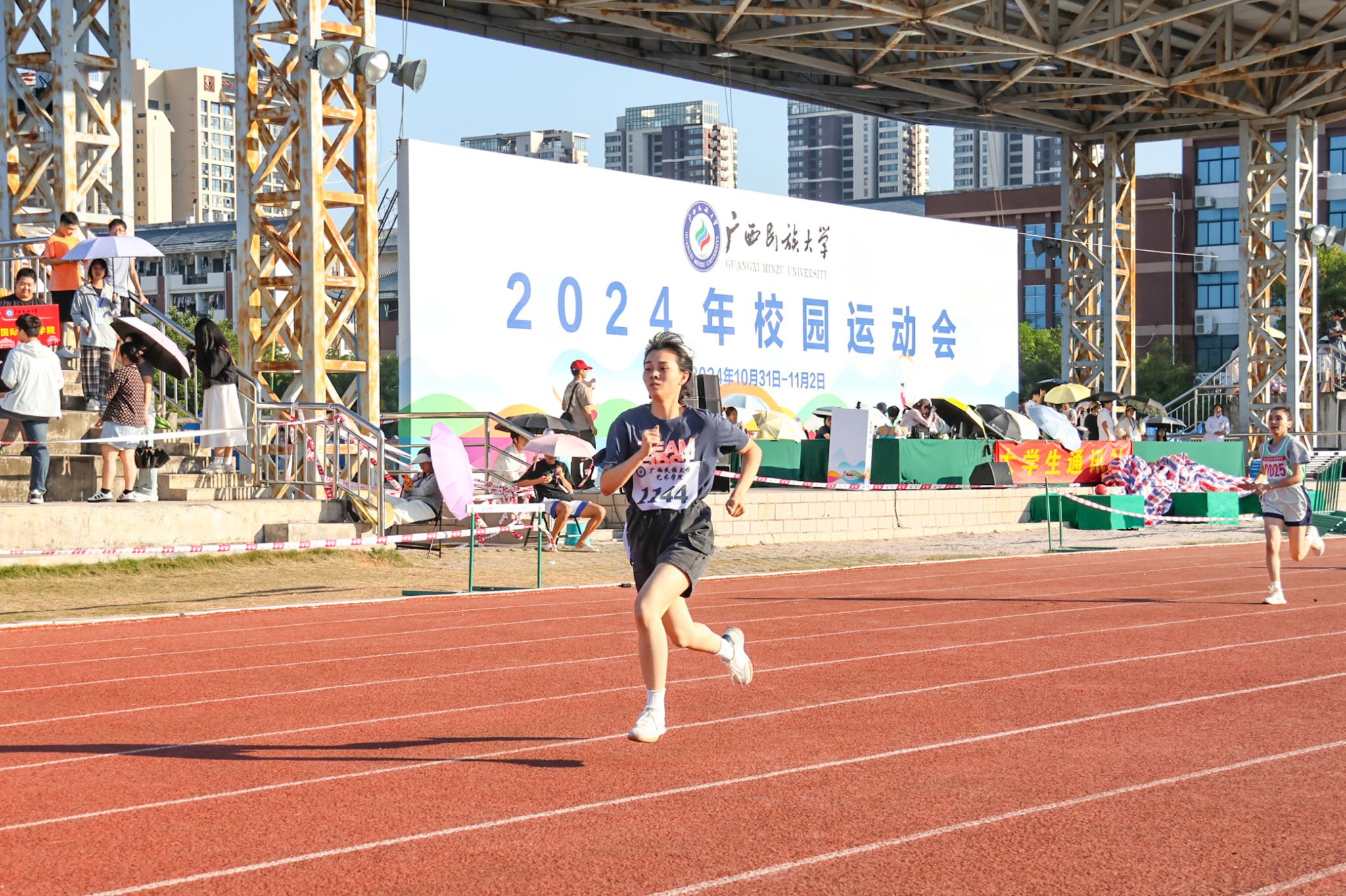 在女子甲组400米比赛中,陆桂妮始终步伐稳健,保持匀速节奏。比赛后半程,陆桂妮在弯道加速追赶第一名,持续大步迈进,在直线冲刺后获得冠军。