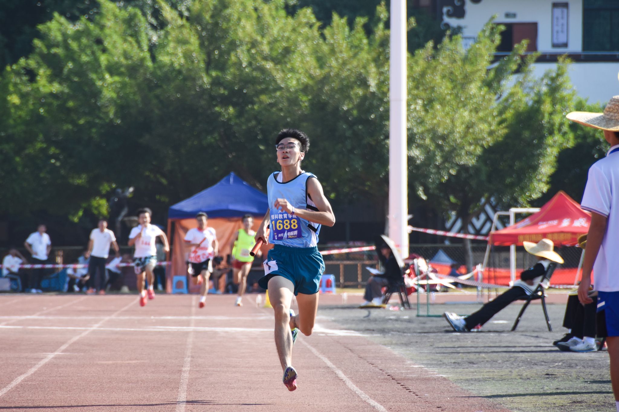 在随后进行的男子甲组4×400米接力赛中,第一圈文学院暂时领跑,预科教育学院位居第二。在第二圈时,预科教育学院运动员降低重心,顺利实现弯道反超,持续加速拉开距离。最后400米,预科教育学院保持领先位置,以3分53秒的成绩领先数学科学学院0.06秒,夺得冠军。(初审:潘之铭 编辑:邓思馨 复审:荣子卿 终审:王文娟)