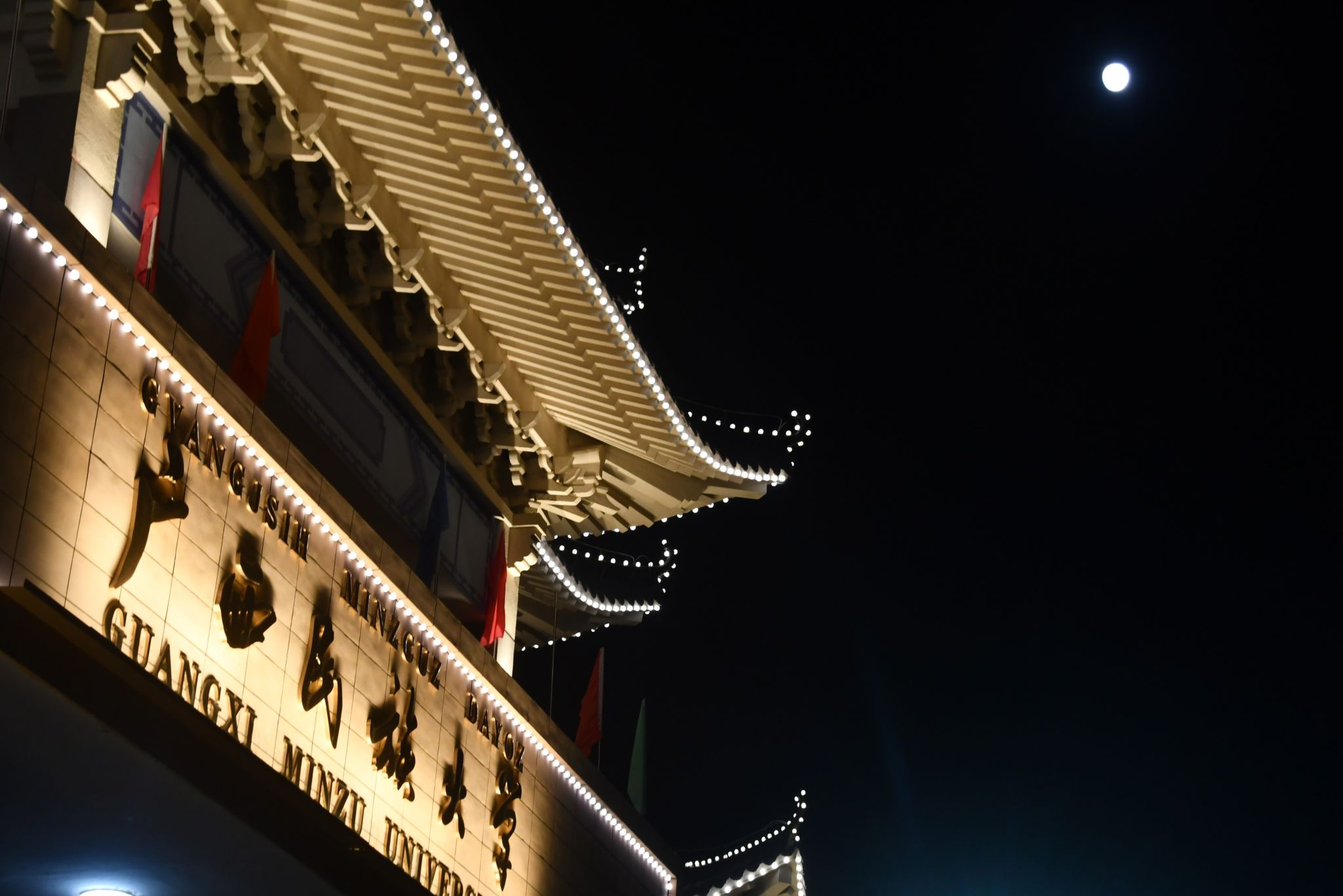 圆月高悬,清辉如练,月光如揉碎的银纱,轻柔漫洒下来。学子们围坐畅谈,言笑晏晏,晚风送来月饼与桂花的甜香,校园里弥漫着节日的喜悦与暖意。月光悄然拂过肩头,将人影温柔浸染,与夜色交织成一副属于民大中秋的动人画卷。