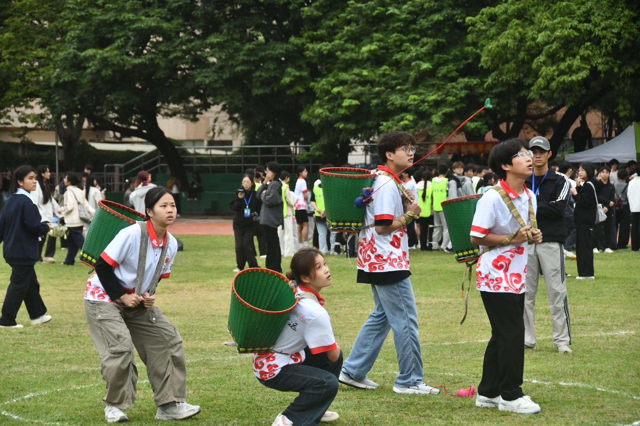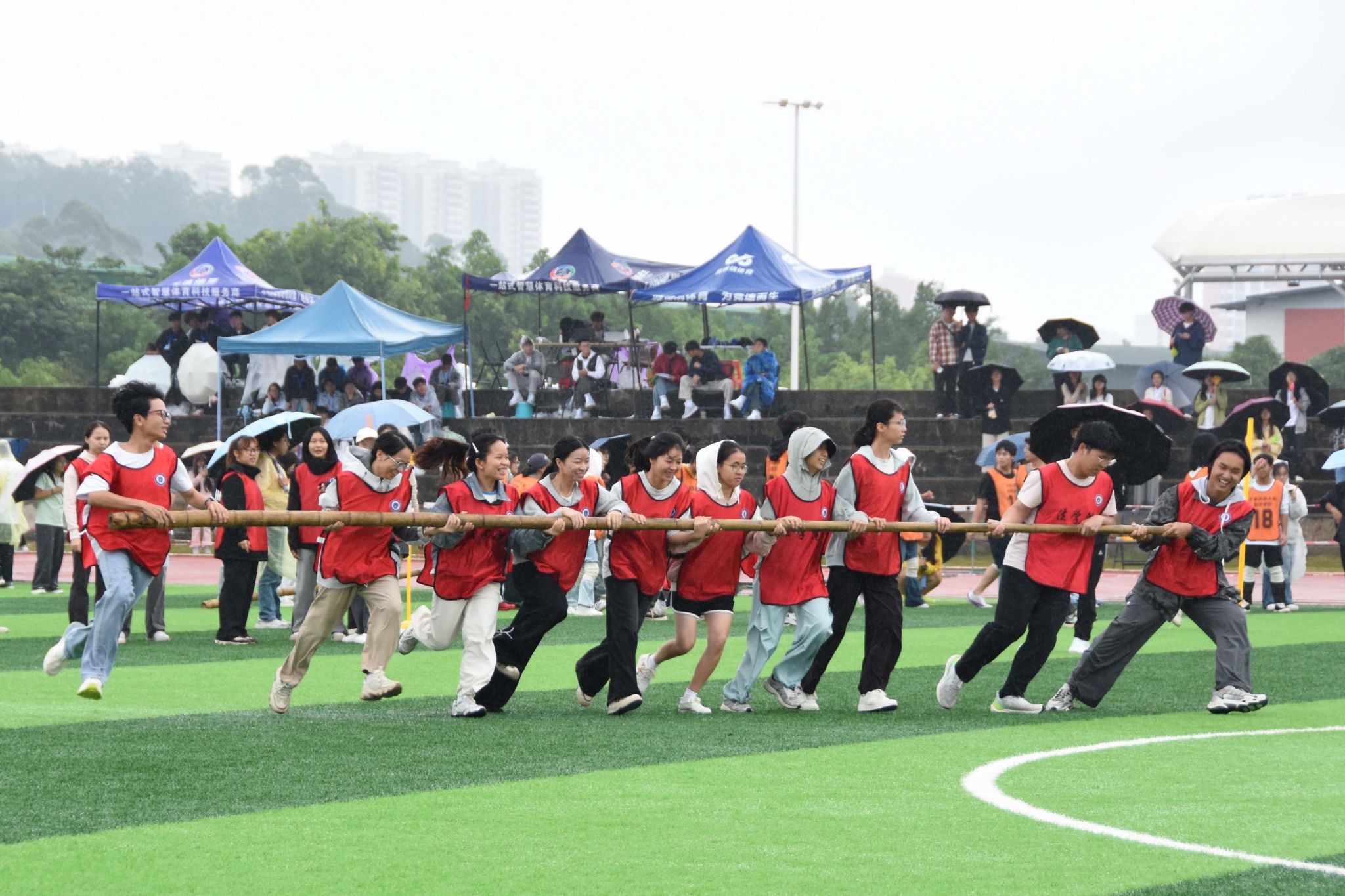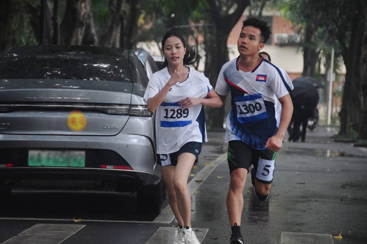 从开幕式亮相到三人板鞋、背篓绣球竞技,再到跳长绳比拼、环校园跑、协同大转盘……留学生们的身影活跃在各个赛场,他们在竞技中交流,在参与中融合,为校运会注入缤纷多元的国际化色彩。