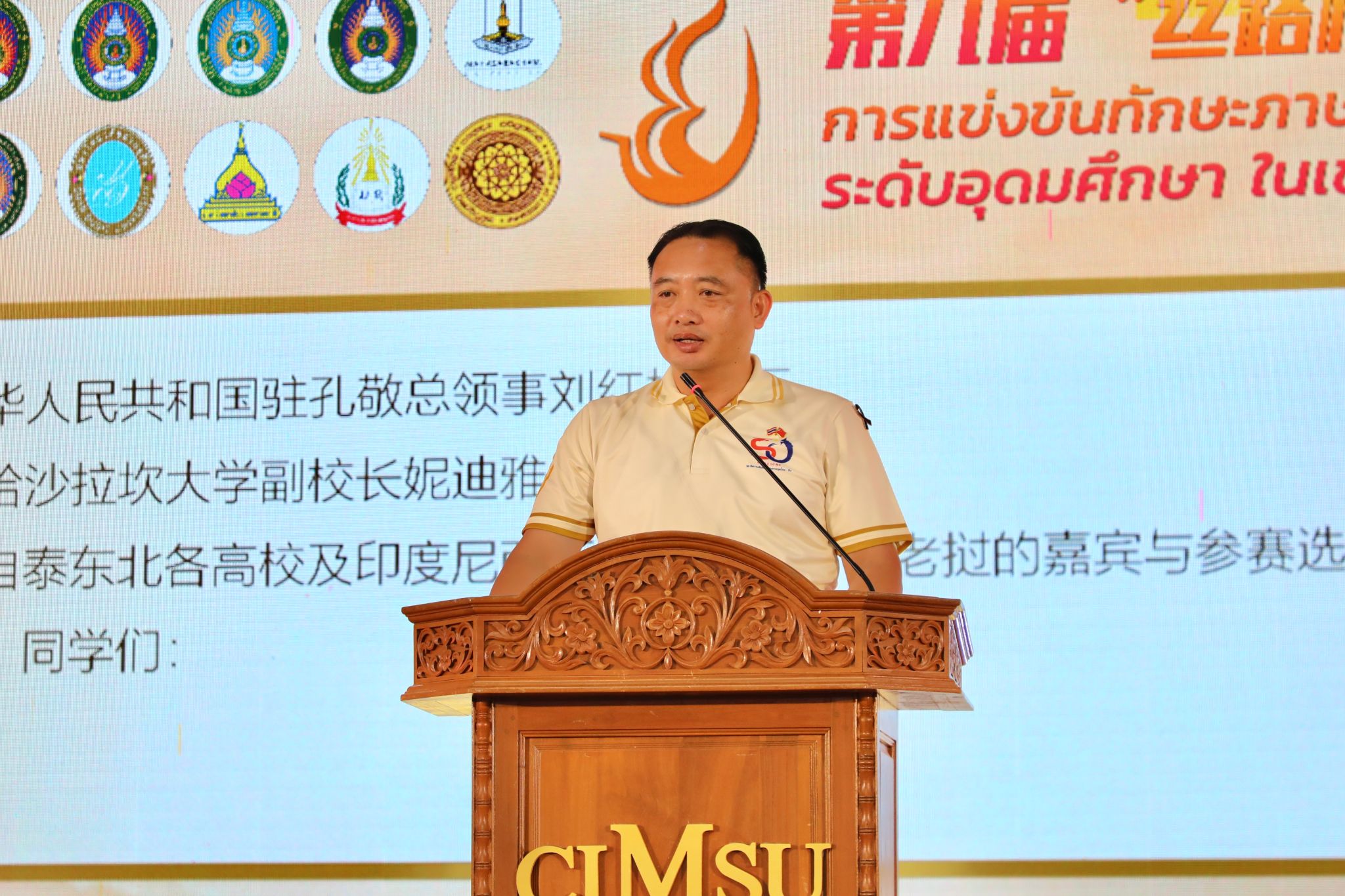 玛哈沙拉坎府副府尹卡诺·希维差楠在致辞中介绍了玛哈沙拉坎府作为泰东北“学术之城”的历史传统,肯定了孔子学院在泰东北中文教育事业中的重要作用。他表示,“丝路杯”大赛影响力不断提升,具有良好的国际吸引力。他期待大赛继续办出水平办出特色,在促进中文教育和中华文化传播方面发挥更大作用。