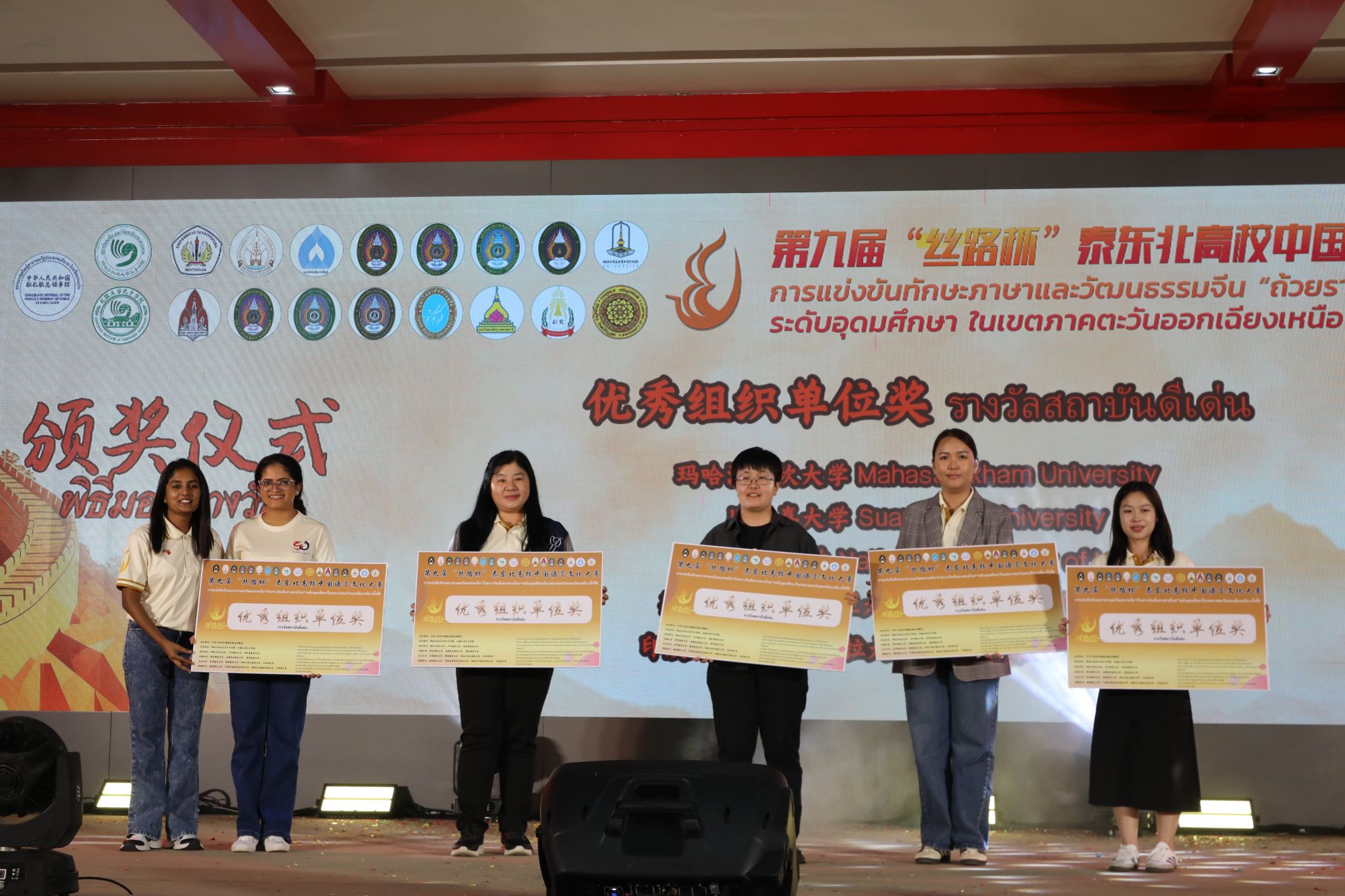 11月21日,由中华人民共和国驻孔敬总领事馆主办,玛哈沙拉坎大学孔子学院与孔敬大学孔子学院联合承办的第九届“丝路杯”泰东北高校中国语言文化大赛在泰国玛哈沙拉坎大学举行。