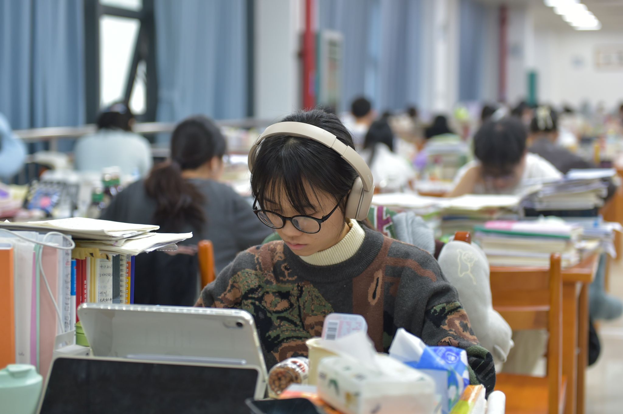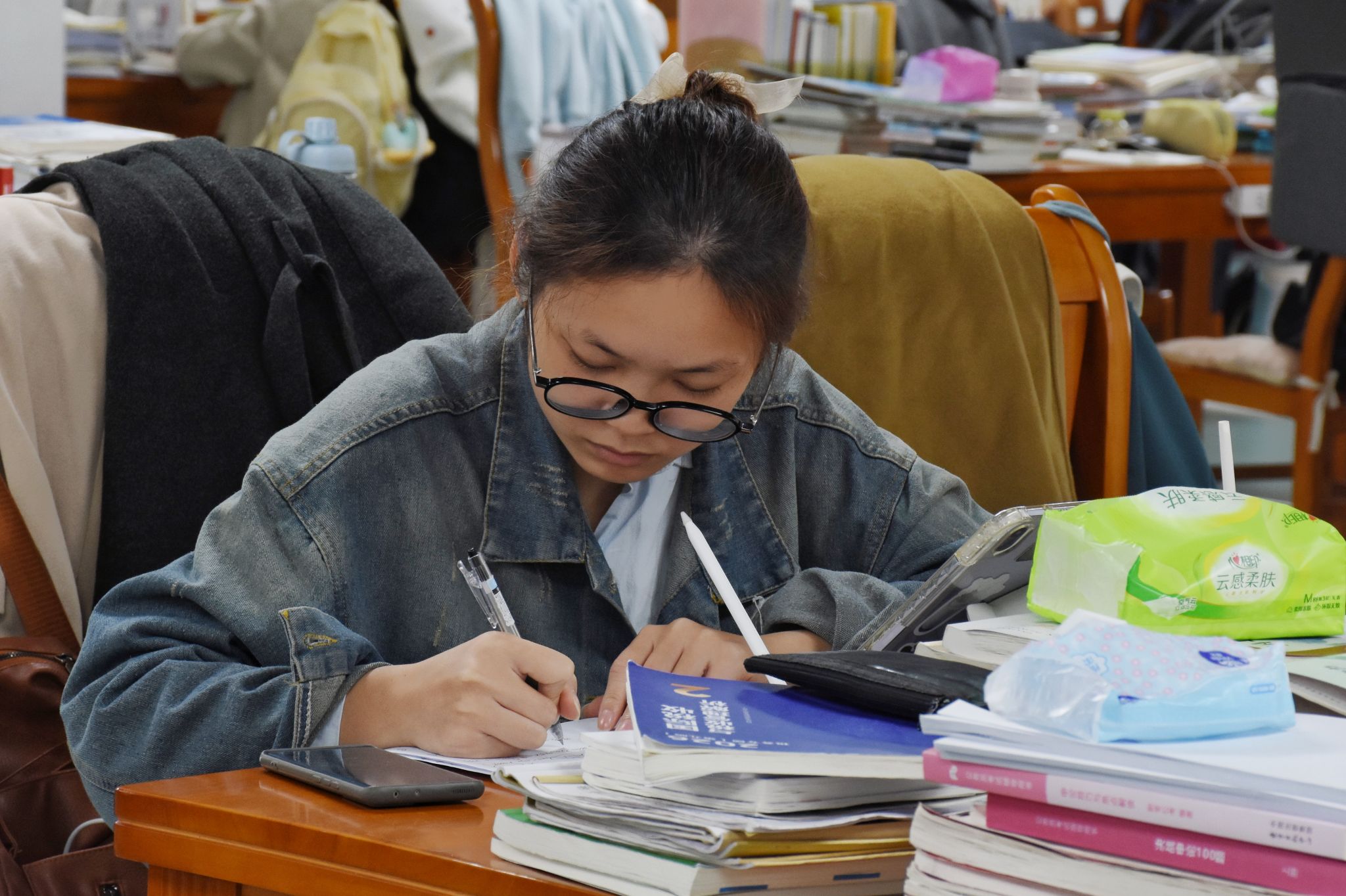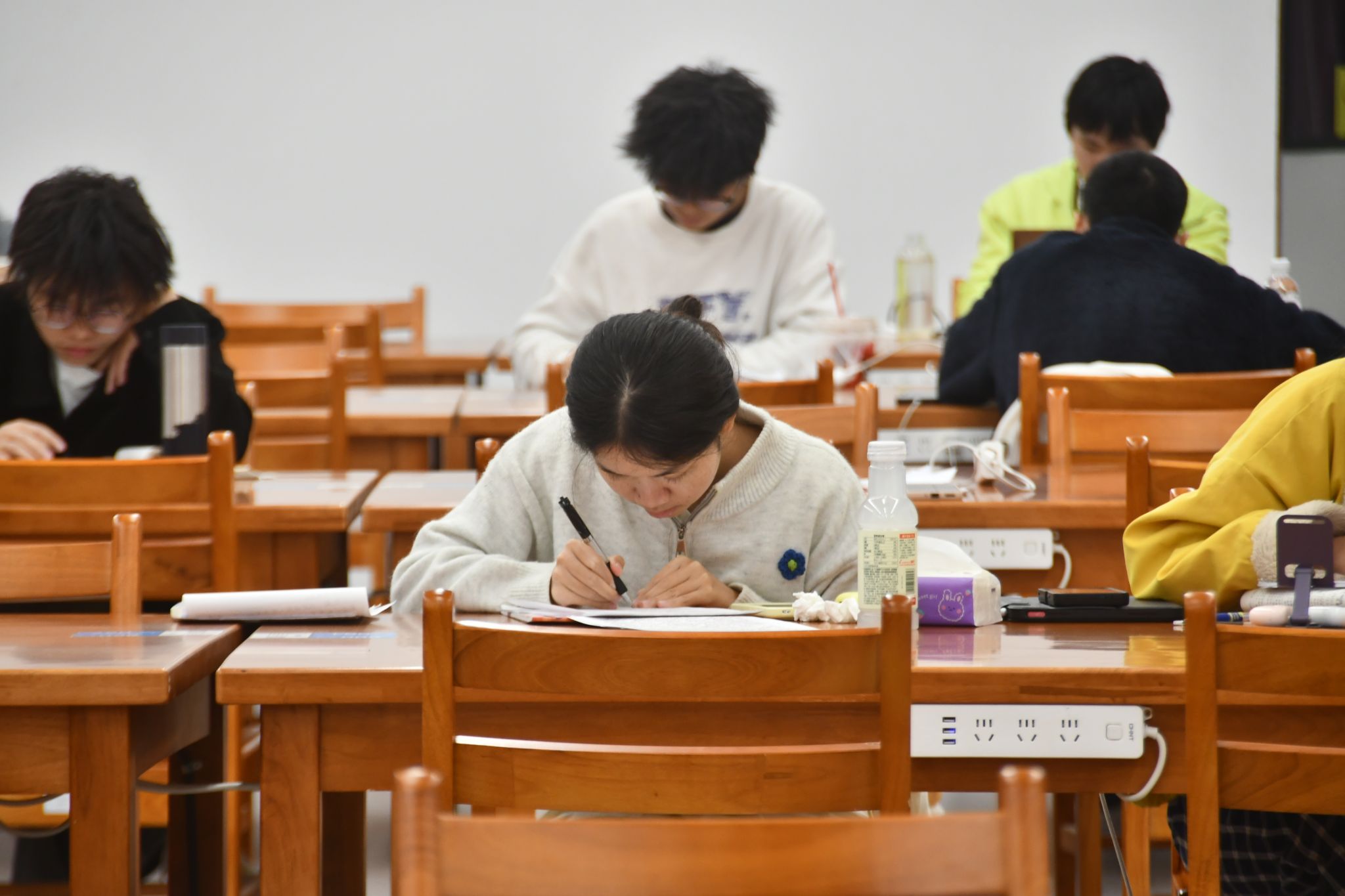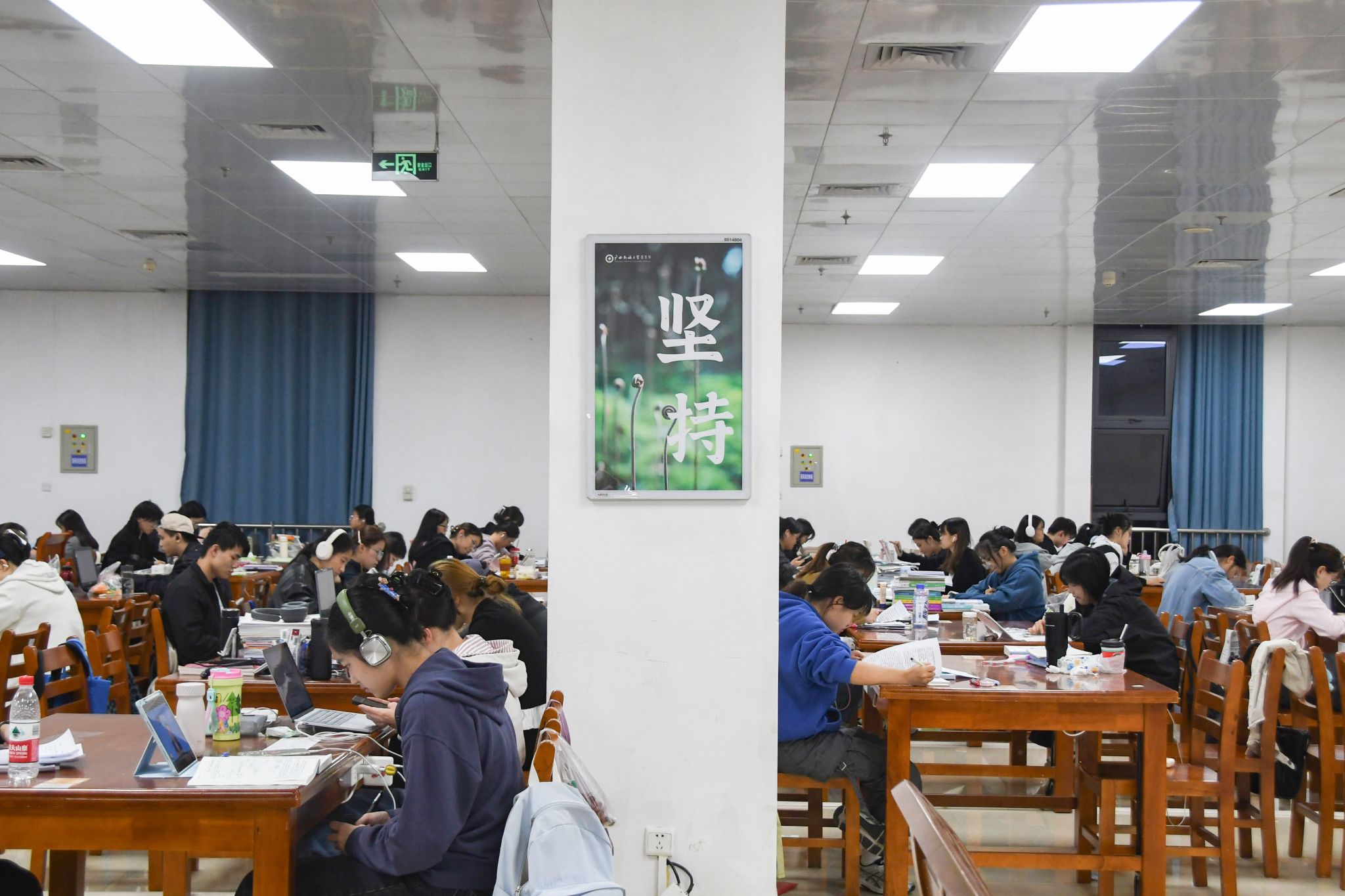 从图书馆的深夜灯火到自习室的安静一隅,从窗前凝思到角落伏案,奋斗是这里不变的基调。笔尖划过纸面的沙沙声,书页轻轻翻动的脆响,交织成最专注的乐章。每一个伏案的身影,都像静默扎根的竹,在时光里沉淀积蓄,等待向上的生长。正如法学院2022级法学专业劳丽华所言:“备考让我真正沉下心来钻研基础。”这份静默的坚守,本身就是一种强大的力量。