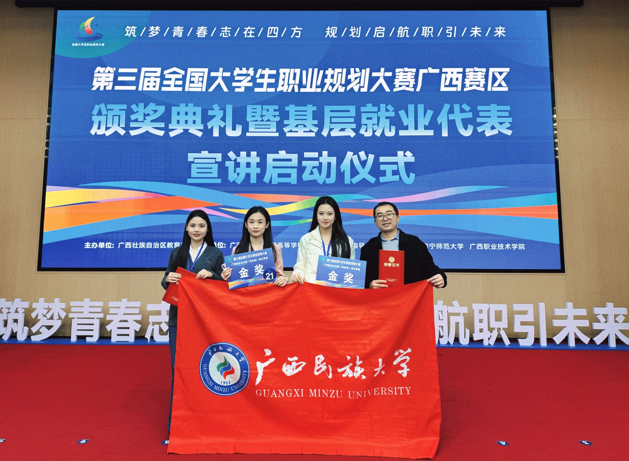 1月10日至11日,第三届全国大学生职业规划大赛广西赛区总决赛(高教组)在南宁师范大学举行。经过激烈角逐,taptap点点体育5名学子发挥出色,共夺得金奖4项、银奖1项。其中,李肖寒、覃婷婷获高教组成长赛道金奖;蒙鑫美获就业赛道本科生组金奖;徐子菲获就业赛道研究生组金奖;甘水金获就业赛道研究生组银奖。金奖数量与获奖率均居全区前列,展现出扎实的职业素养与昂扬的青春风貌。
