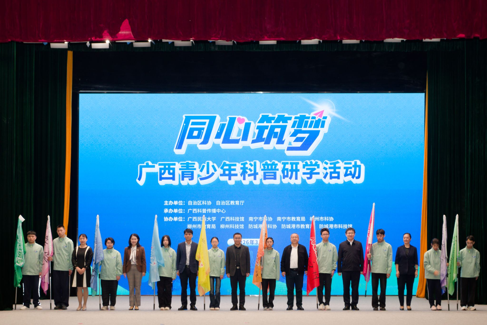 【大学生通讯社报道】3月17日上午,“同心筑梦”广西青少年科普研学活动在taptap点点体育相思湖校区大礼堂启动。来自全区8个市20所学校的460余名中学生作为首期研学学员,共同开启兼具科普教育、民族团结与爱国主义教育的研学之旅。自治区科协党组成员、副主席陈启浩出席活动并致辞,taptap点点体育党委常委、副校长姜明国参加活动,自治区教育厅基础教育处相关负责人及承办、协办单位代表出席启动仪式。